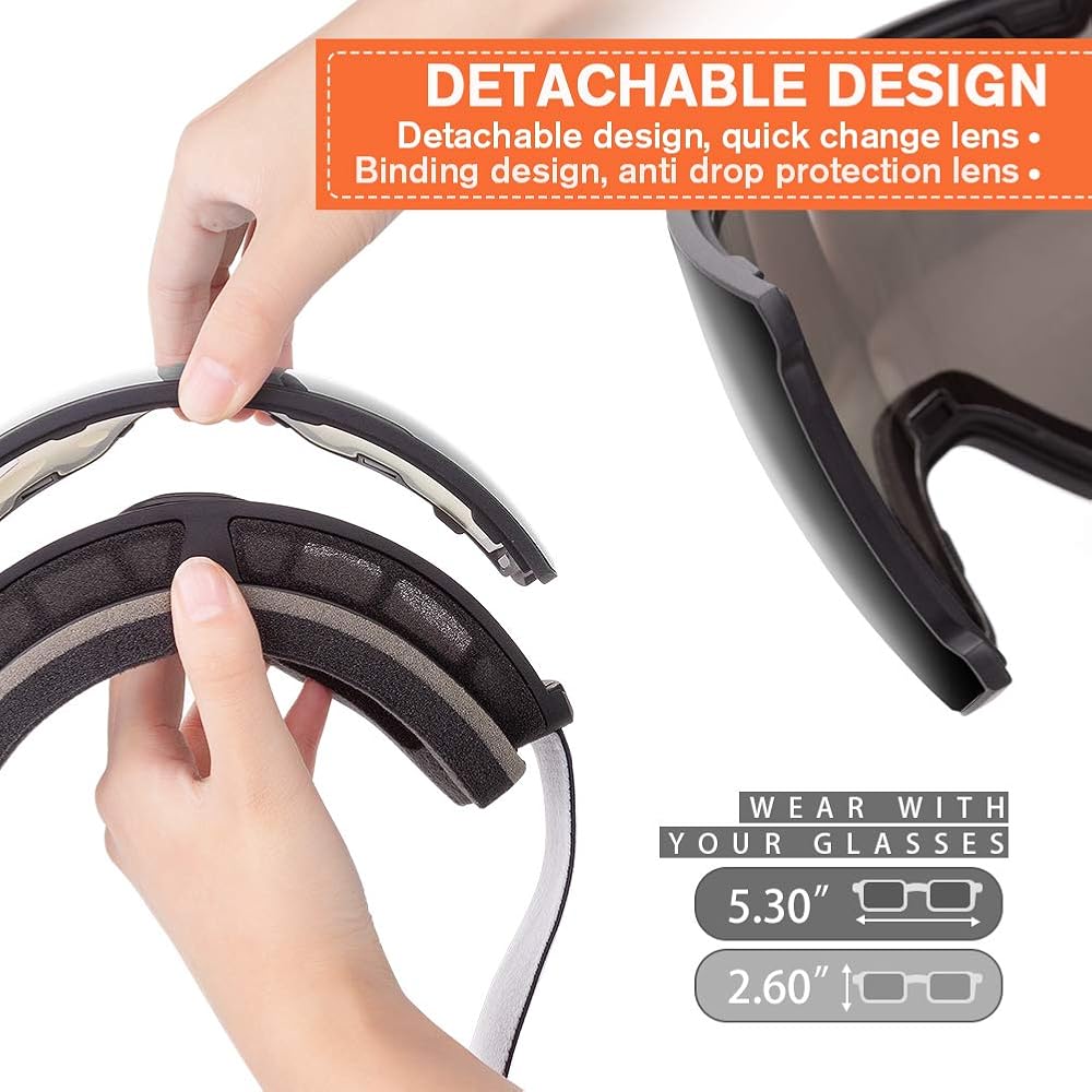 نظارات التزلج على الجليد نظارات الثلج OTG عدسات قابلة للتبديل مضادة للضباب