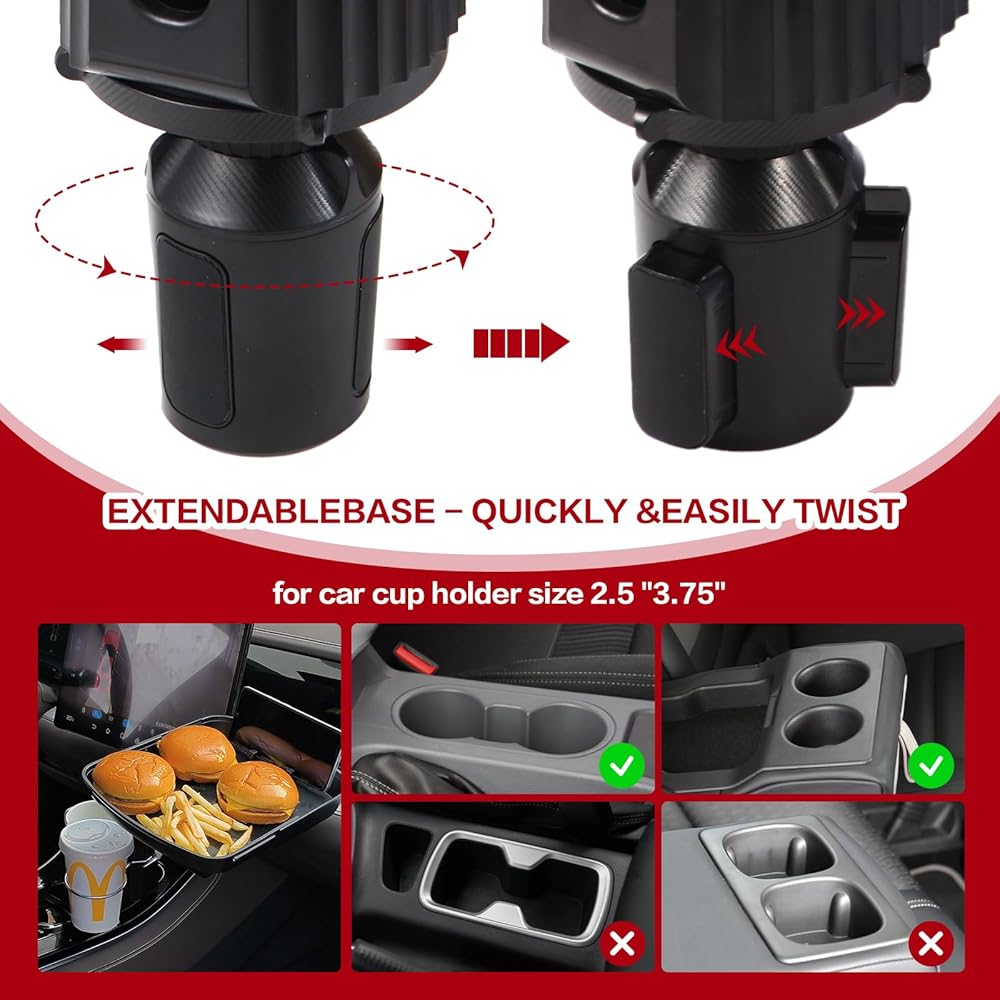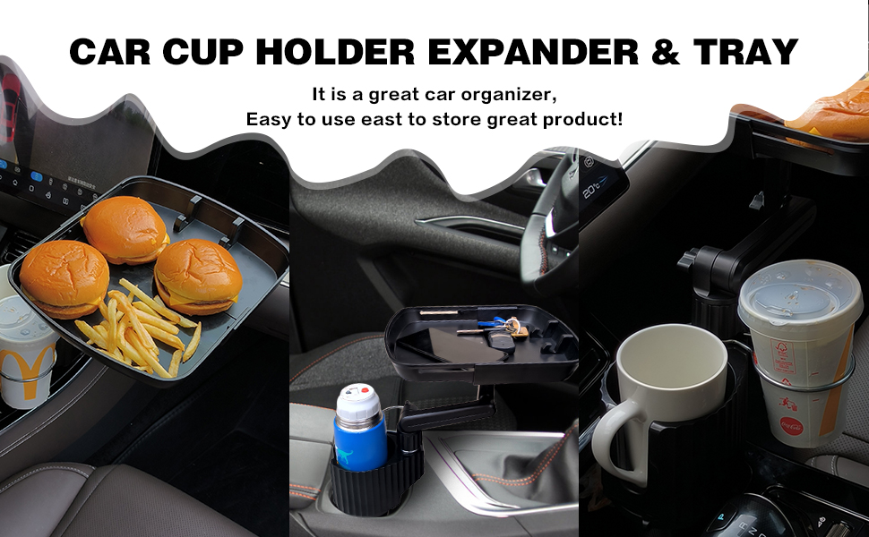 🚗【حامل أكواب سيارة 4 في 1 مطور】 لا يحتوي موسع حامل الأكواب على حاملي أكواب فقط، كما أن موسع حامل أكواب السيارة أيضًا طاولة مؤقتة للحفاظ على مساحة طعام منظمة أثناء الرحلات البرية، كما يحتوي حامل الأكواب للسيارة على فتحة بطاقة مناسبة لوضعها. الهواتف المحمولة. تضيف صواني السيارة لتناول الطعام مساحة وعملية للمركبات. قاعدة صينية طعام السيارة القابلة للسحب أكثر استقرارًا ولا تهتز، والدعامة القابلة للفصل تجعل المساحة المحدودة أسهل في الإدارة والتخزين.
