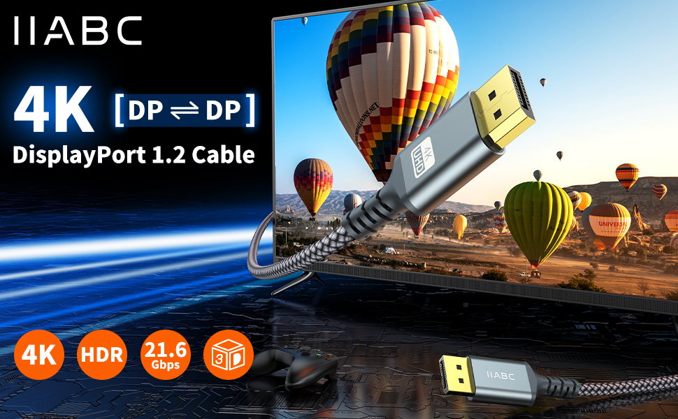 • 【دقة عالية ومعدل تحديث】يدعم كابل IIABC DP ثلاثي الأبعاد، UHD 4K (3840x2160@60 هرتز)، 2K (2560x1440@165 هرتز)، 1080P Full HD. متوافق مع الإصدارات السابقة مع معيار DP1.2/1.1/1.1a. مناسبة للوضع الممتد أو المتطابق.