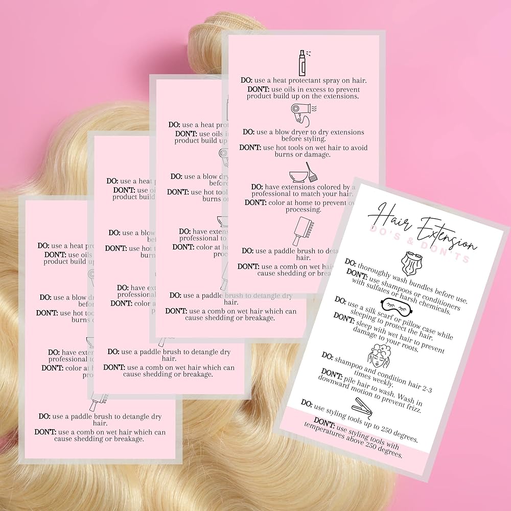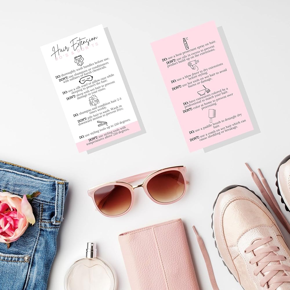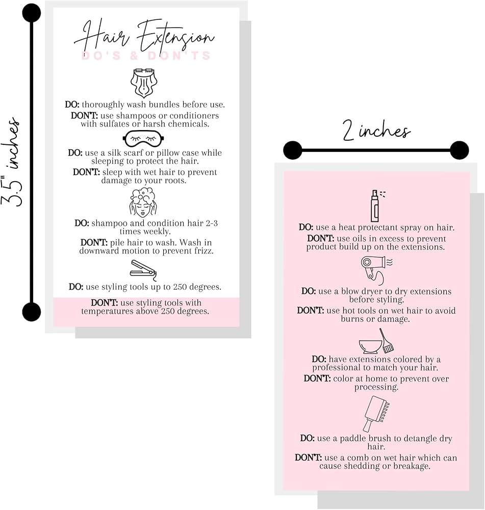 بطاقة ما يجب فعله وما لا يجب فعله بشأن وصلات الشعر | حجم بطاقة العمل المطبوعة فعليًا مقاس 2 × 3.5 بوصة | لوازم التجميل | تصميم البطاقة باللونين الأبيض والوردي
