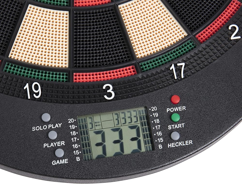 لوح رمي السهام الإلكتروني خفيف الوزن من Arachnid مع شاشات عرض LCD، وميزة Heckler، وسجل 8 لاعبين و21 لعبة مع 65 اختلافًا، أسود، 18.5 طول × 17.5 عرض × 6.75 عمق.