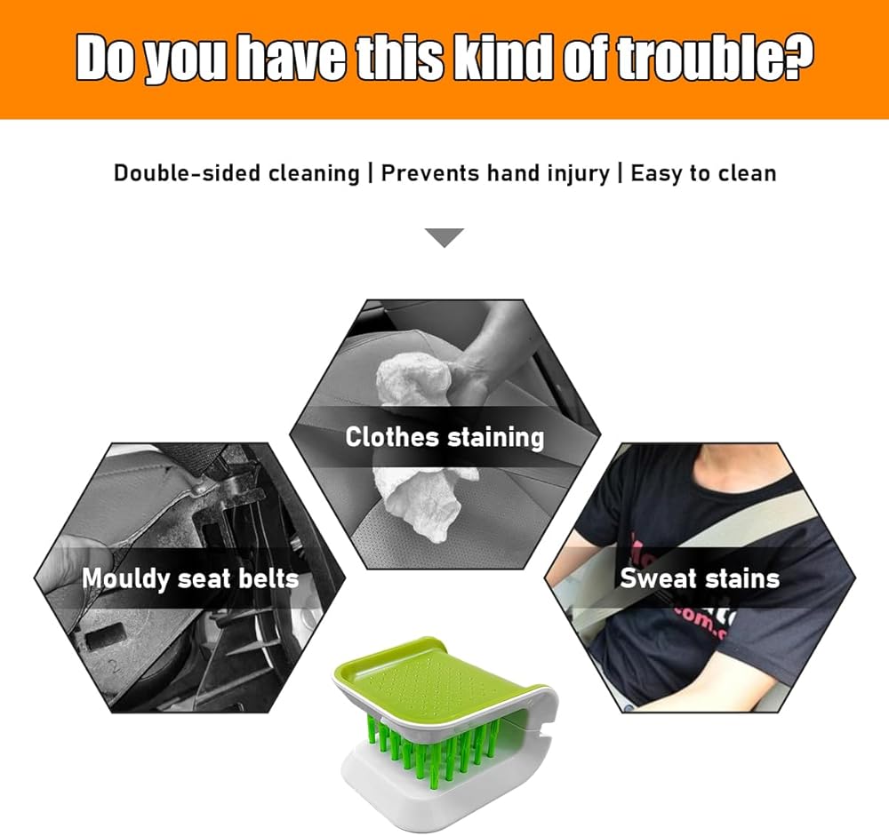 【تصميم على شكل حرف U】: يتميز بتصميم فتح مبتكر على شكل حرف U ينظف جانبي حزام الأمان في نفس الوقت، مما يبقي الأصابع بعيدًا عن الحواف الحادة ويمنع الخدوش. إنه حل جيد لمشكلة عدم إمكانية استخدام الفرشاة بشكل فعال بسبب عدم ثبات حزام الأمان.