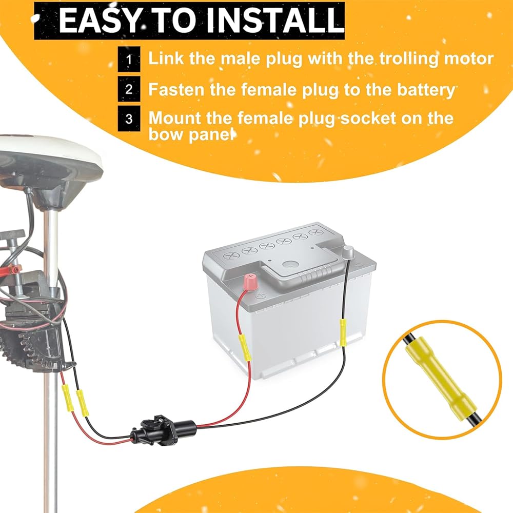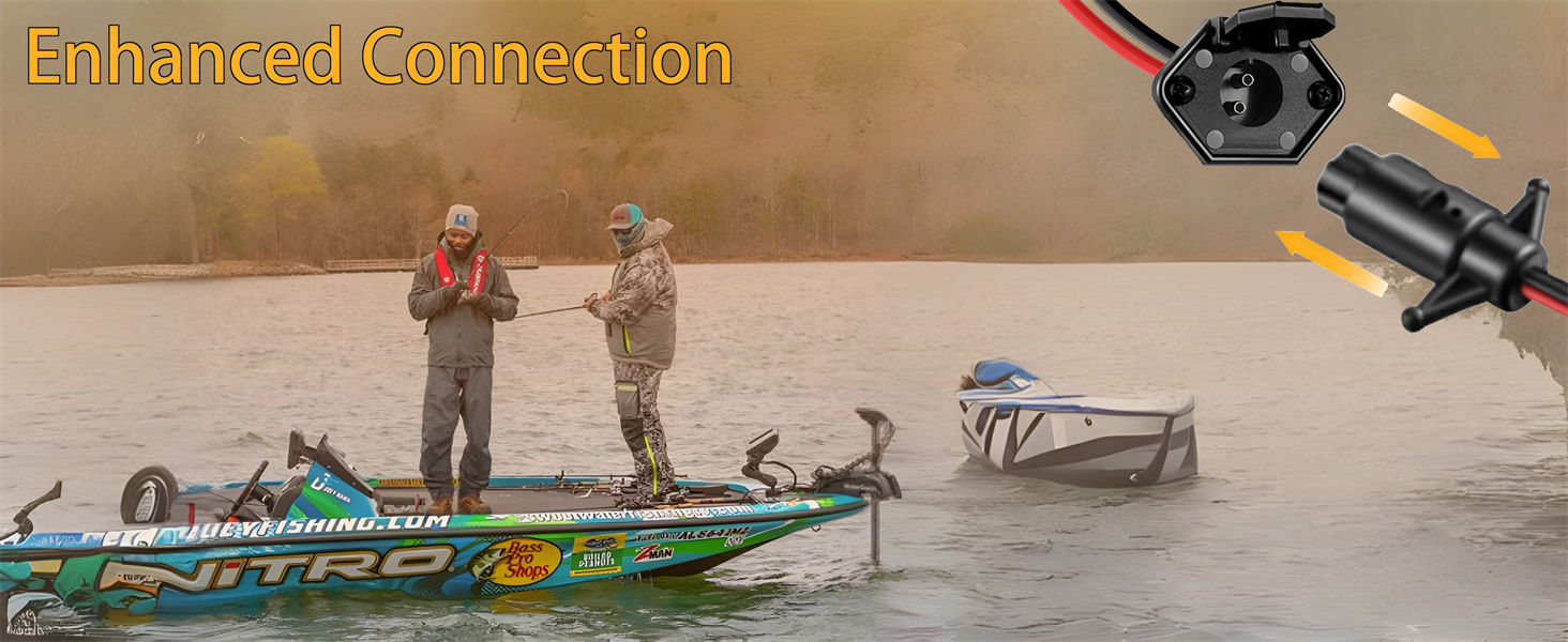تدابير سلامة لا مثيل لها: يوفر قابس محرك الصيد هذا بقدرة 12 فولت أمانًا وأمانًا لا مثيل لهما، وذلك بفضل تصميم موصل محرك الصيد القوي ثنائي الشق للذكور والإناث. اتصالك آمن ومحمي من الانقطاع العرضي.