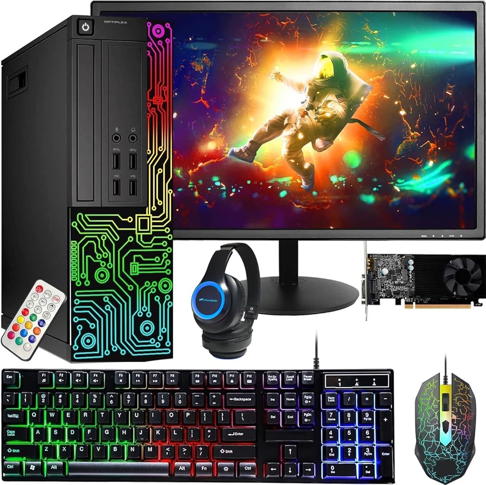 • النقطة الصحيحة: PC Gold Treasure Box RGB Dell Desktop PC وIntel Quad Core i5 حتى 3.6 جيجا هرتز و16 جيجا DDR3 و512 جيجا SSD وDVD وWi-Fi وBluetooth.