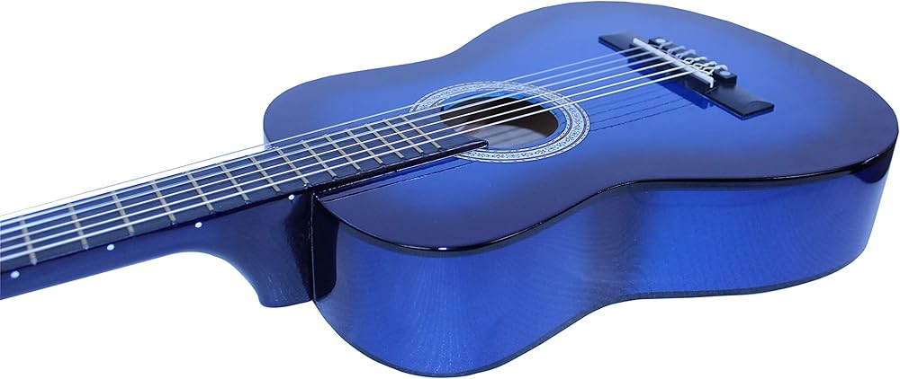 The 31”Classical Guitar has a loud and bright ringing tone that clearly projects to the listener.
