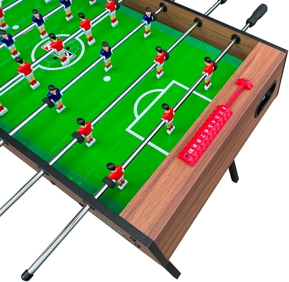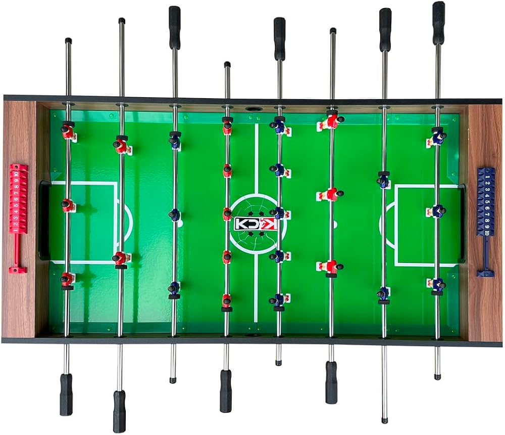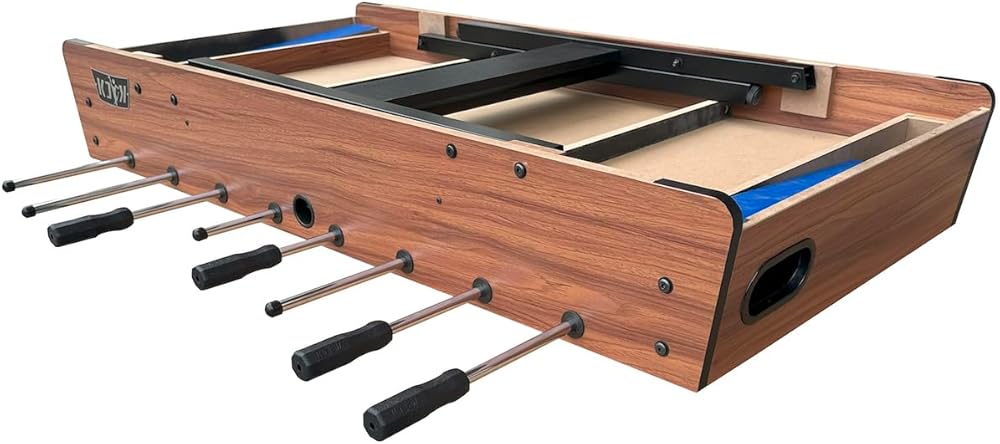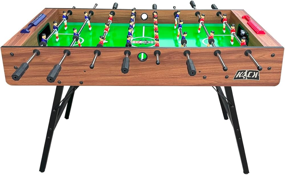 The KICK Arcadia 48 inch Foosball table, is a simply designed table that will fit in any room of your home.The 0.19 inch playing field will always be straight due to the leg levelers, and the counterbalanced players on the playing field will keep the match intense because you can choose the 1-man or the 3-man goalie configuration. You will become an expert without even noticing! This table is one of the best home tables on the market.