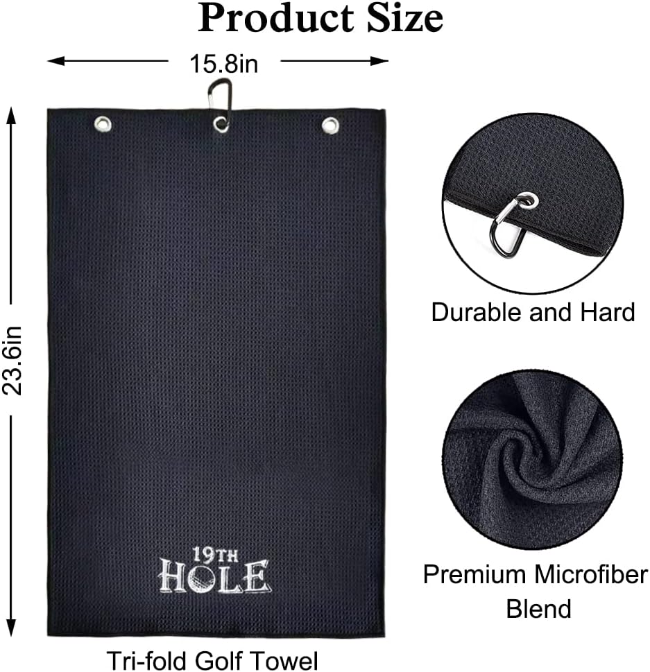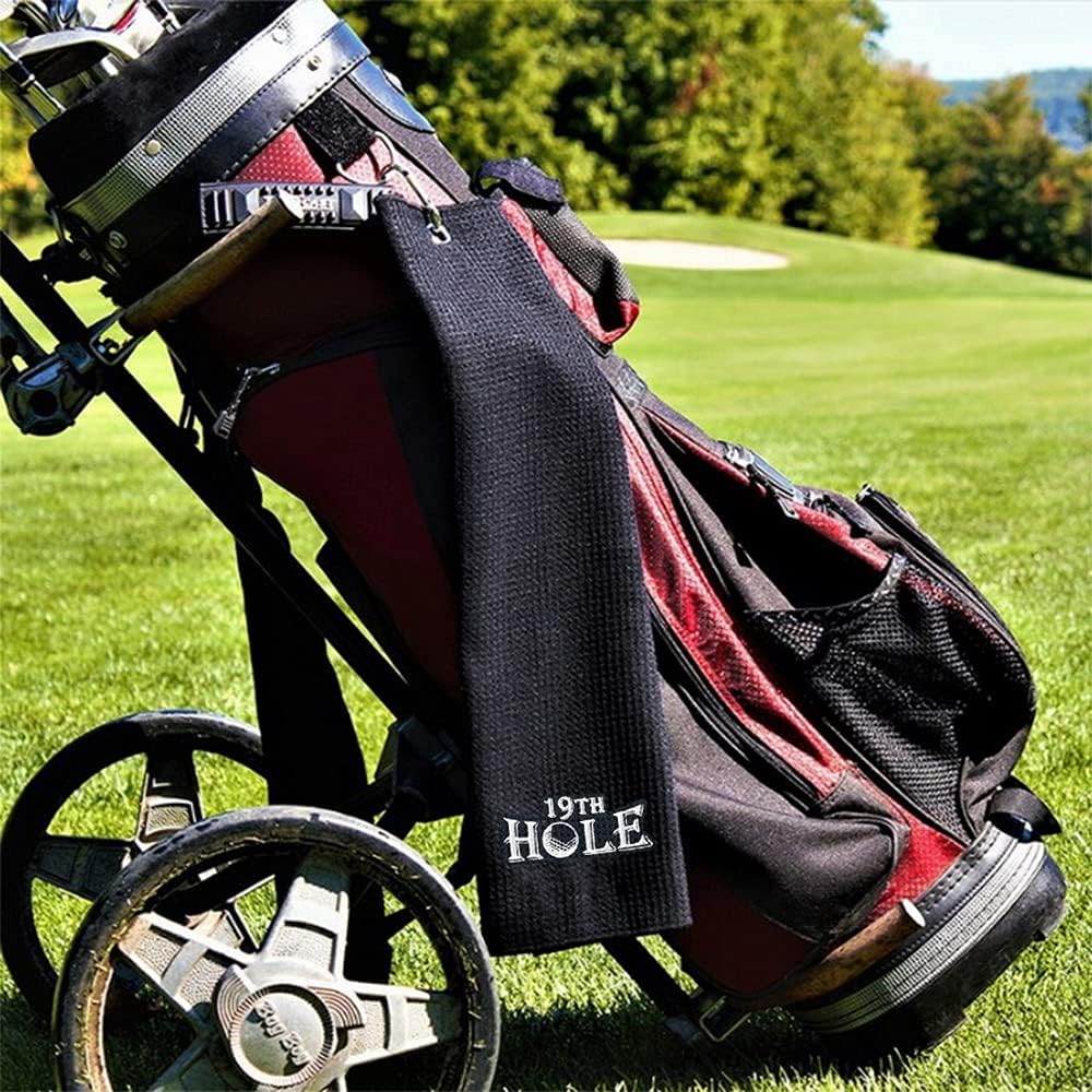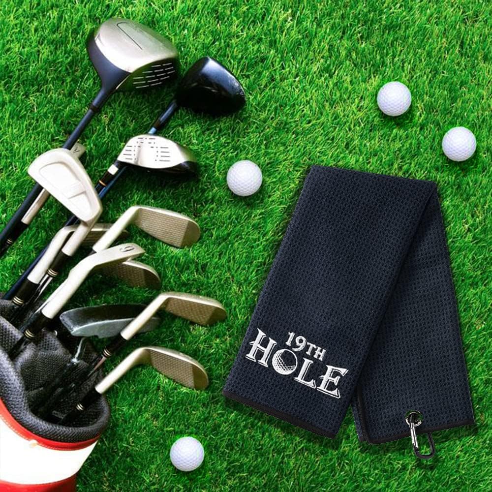 منشفة جولف مضحكة بفتحة 19، مناشف جولف مطرزة لحقائب الجولف مع مشبك، مناشف جولف مضحكة للرجال، منشفة جولف للأب، هدية جولف للزوج وصديقها الأب، هدايا عيد ميلاد لمحبي الجولف