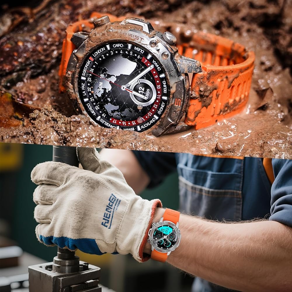 【مقاومة للغاية للتلف】تم استخدام حافظة معدنية قوية بشكل لا يصدق ومقاومة للتآكل للساعة الذكية WalkerFit M6 Ultra لإحاطة الساعة الذكية ومنحها غطاءً. لقد صمدت أمام الاختبارات بما في ذلك 72 ساعة من رش الملح، و50000 ضغطة زر، ودرجات حرارة تتراوح من -40 درجة فهرنهايت إلى 158 درجة فهرنهايت، ومقاومة للماء بطول متر واحد، وتحمل 100 قطرة من ارتفاع 2 متر. تضمن لك هذه الساعات الذكية القوية للرجال استخدامها بثقة في مجموعة متنوعة من الظروف القاسية.