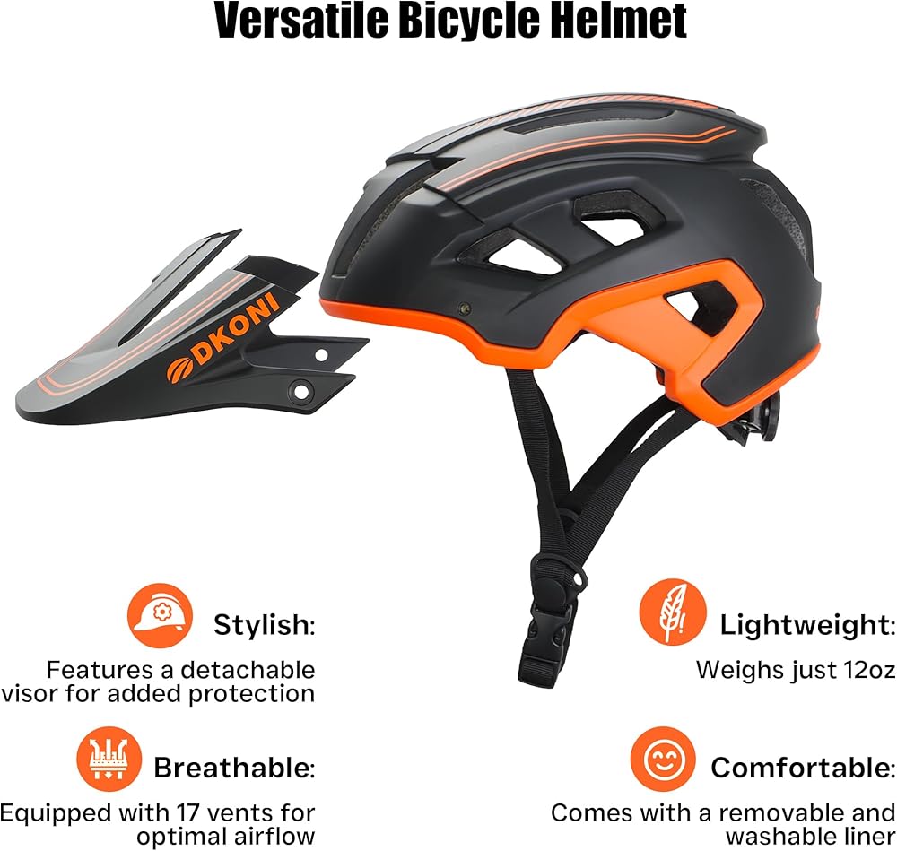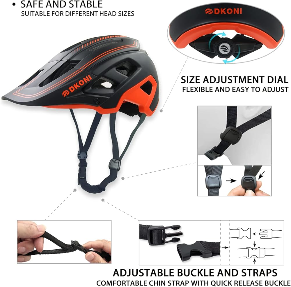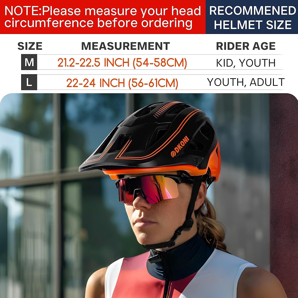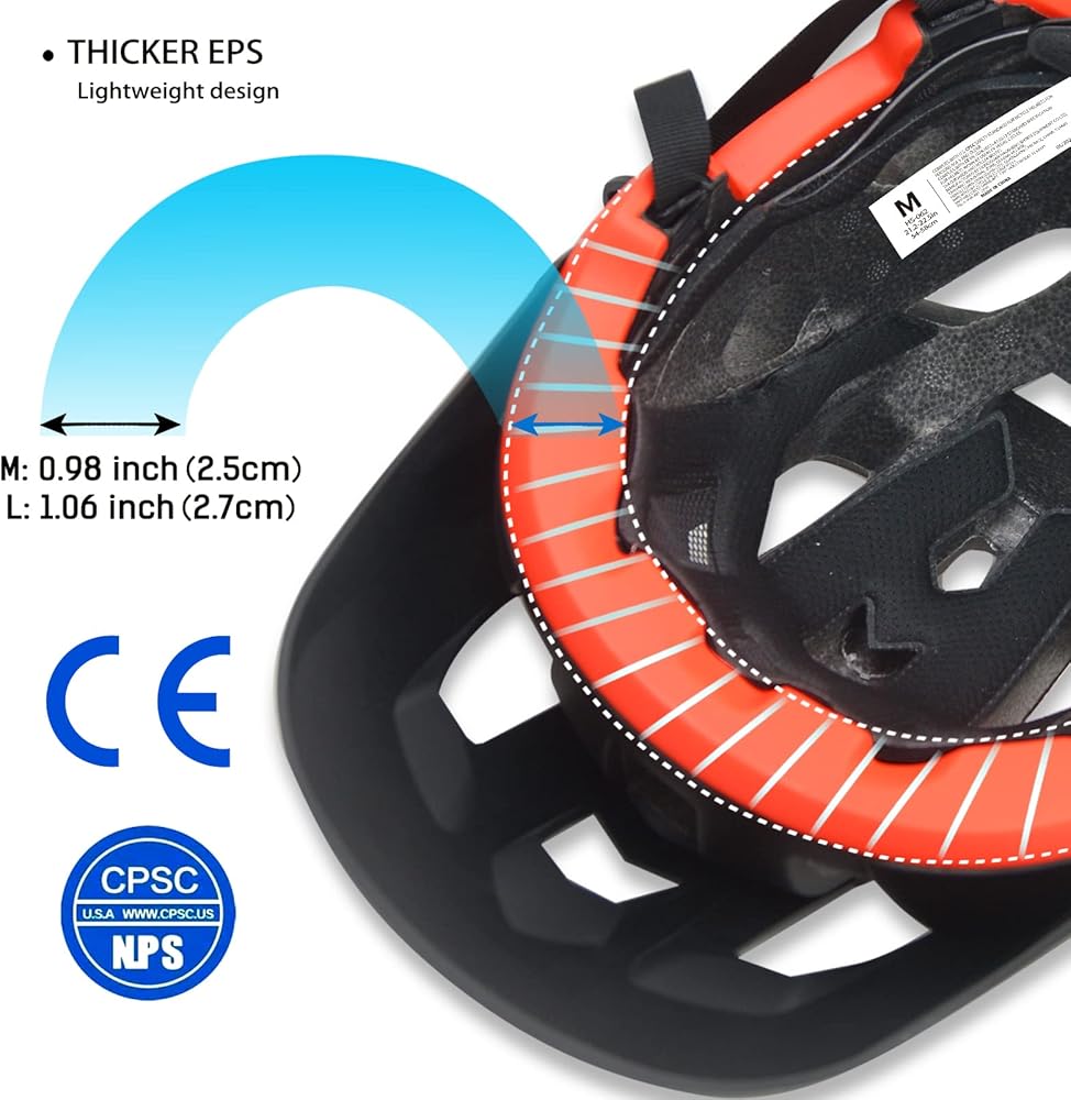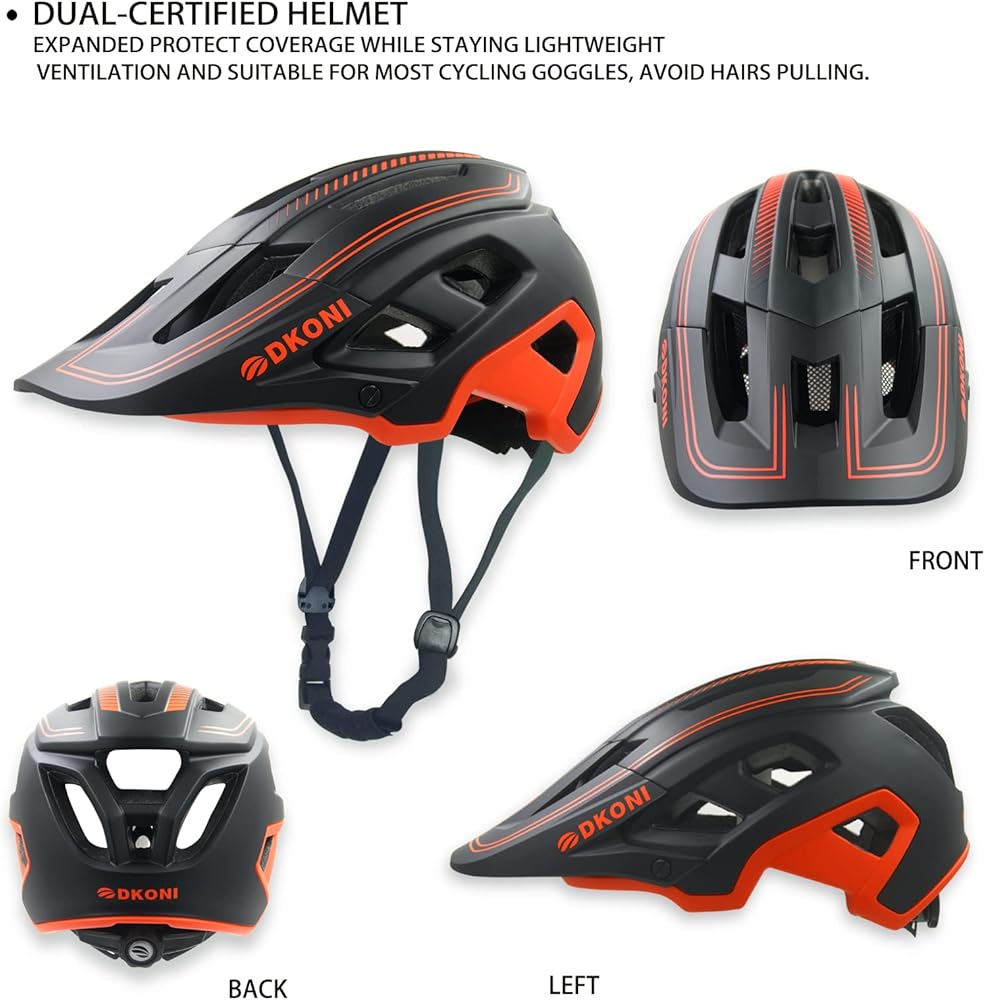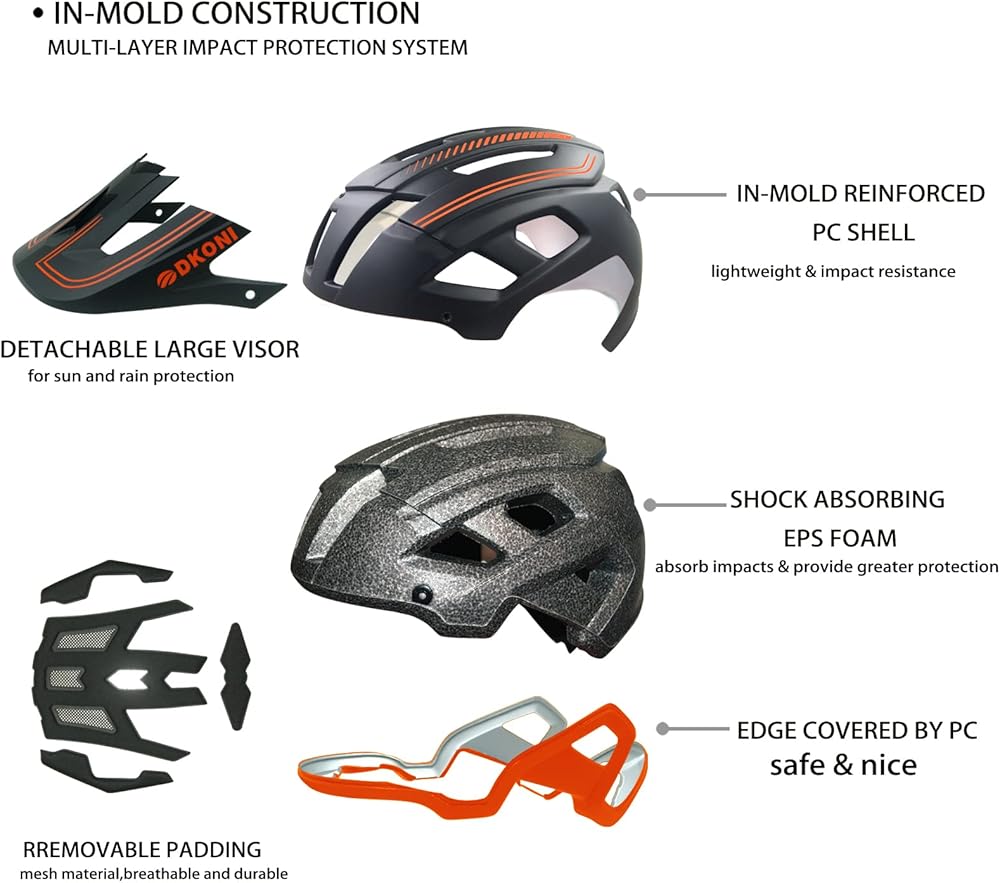 شهادة السلامة المزدوجة: خوذة الدراجة DKONI تلبي معايير السلامة الأمريكية والاتحاد الأوروبي. هيكل مقوى من البولي كربونات مصبوب برغوة EPS الداخلية (المصنوعة في الولايات المتحدة الأمريكية) يمتد إلى أسفل الجوانب والجزء الخلفي من الرأس للحصول على أقصى قدر من التغطية والمتانة.