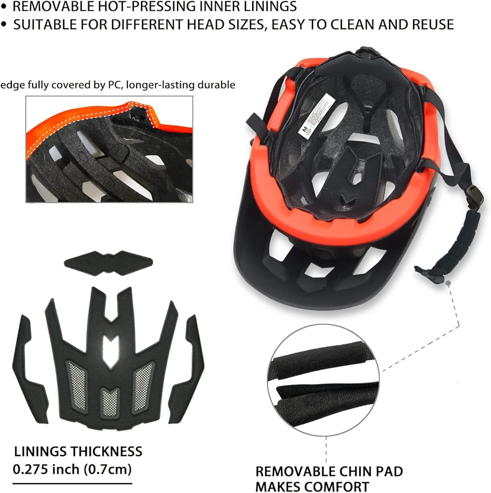 خوذة دراجة جبلية مريحة: واقي شمس سميك قابل للفصل، وسادات إسفنجية داخلية ناعمة، حزام ذقن قابل للتعديل صديق للبشرة يوفر ارتداءً مريحًا وملاءمة أفضل