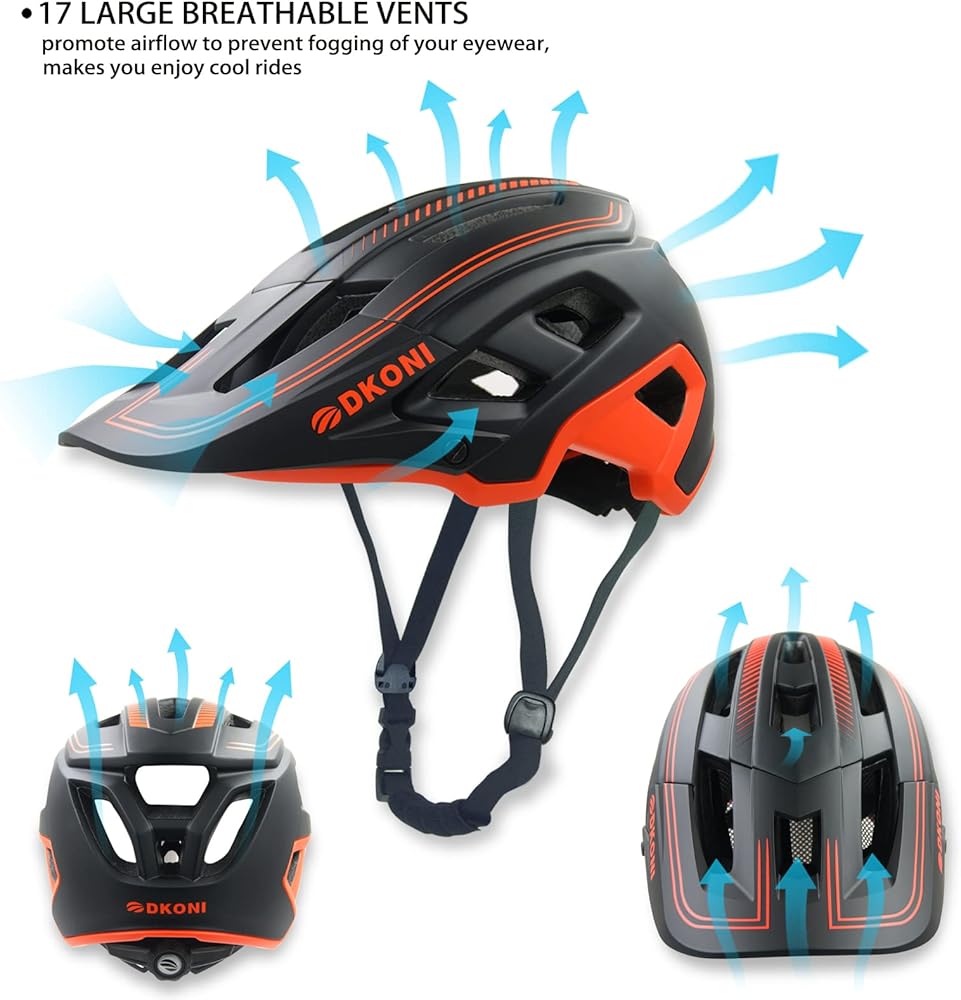 نظام تهوية هوائية: خوذة دراجة DKONI مصممة بـ 17 فتحة تهوية كبيرة، هيكل انسيابي يزيد من تدفق الهواء لمنع ضباب نظارتك ويجعلك تستمتع بالركوب البارد أثناء ركوب الدراجات لمسافات طويلة