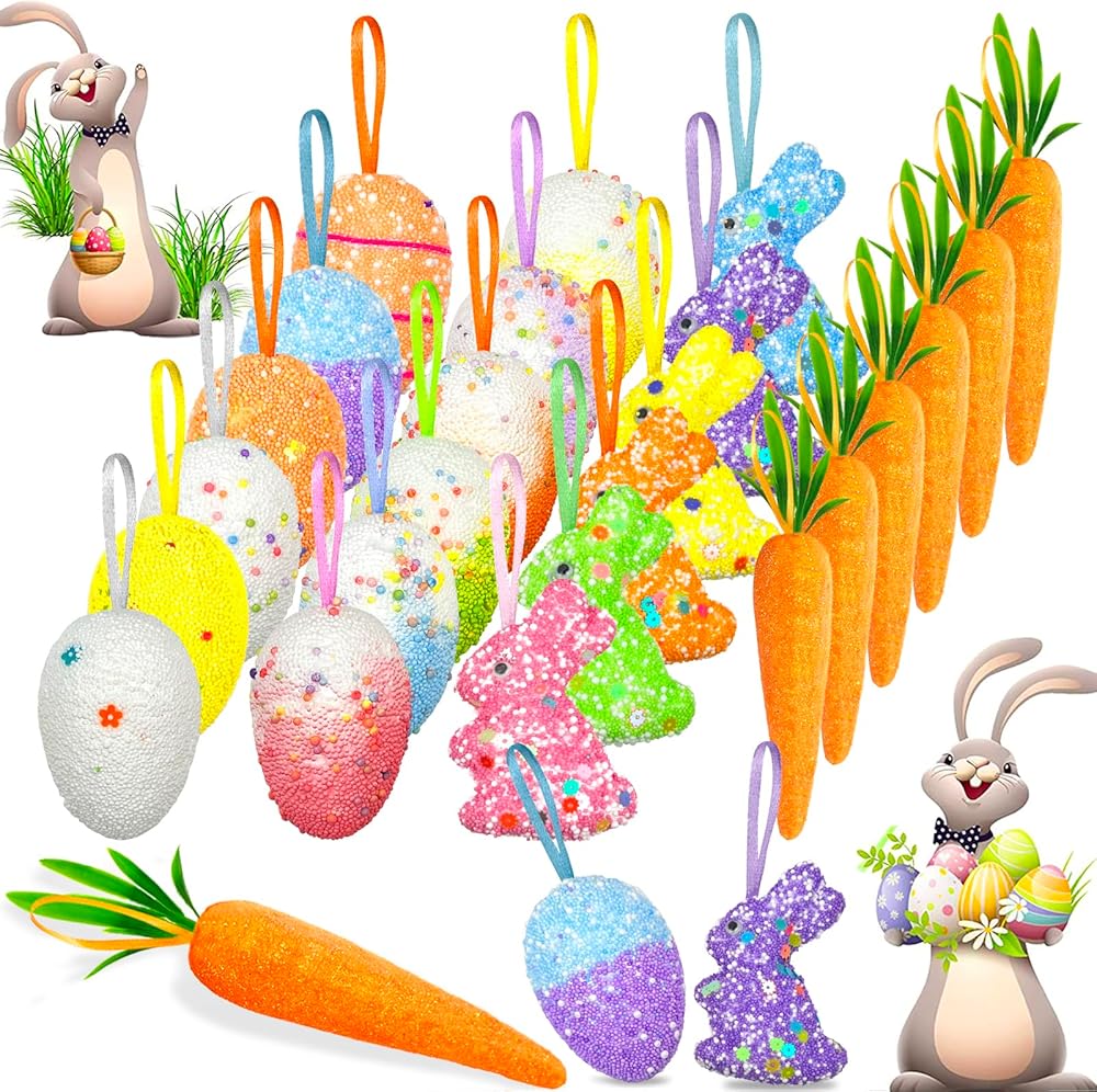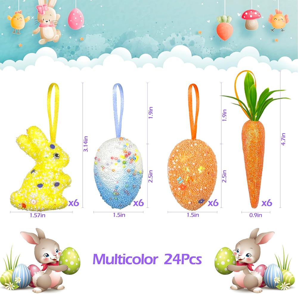 24 قطعة من زخارف بيض عيد الفصح والجزر، زخارف معلقة من الفوم الملون، زينة أرنب عيد الفصح المعلقة من الفوم الفاخر، بريق الجزر الاصطناعي، ديكورات شجرة عيد الفصح، ديكورات المنزل والحفلات اليدوية