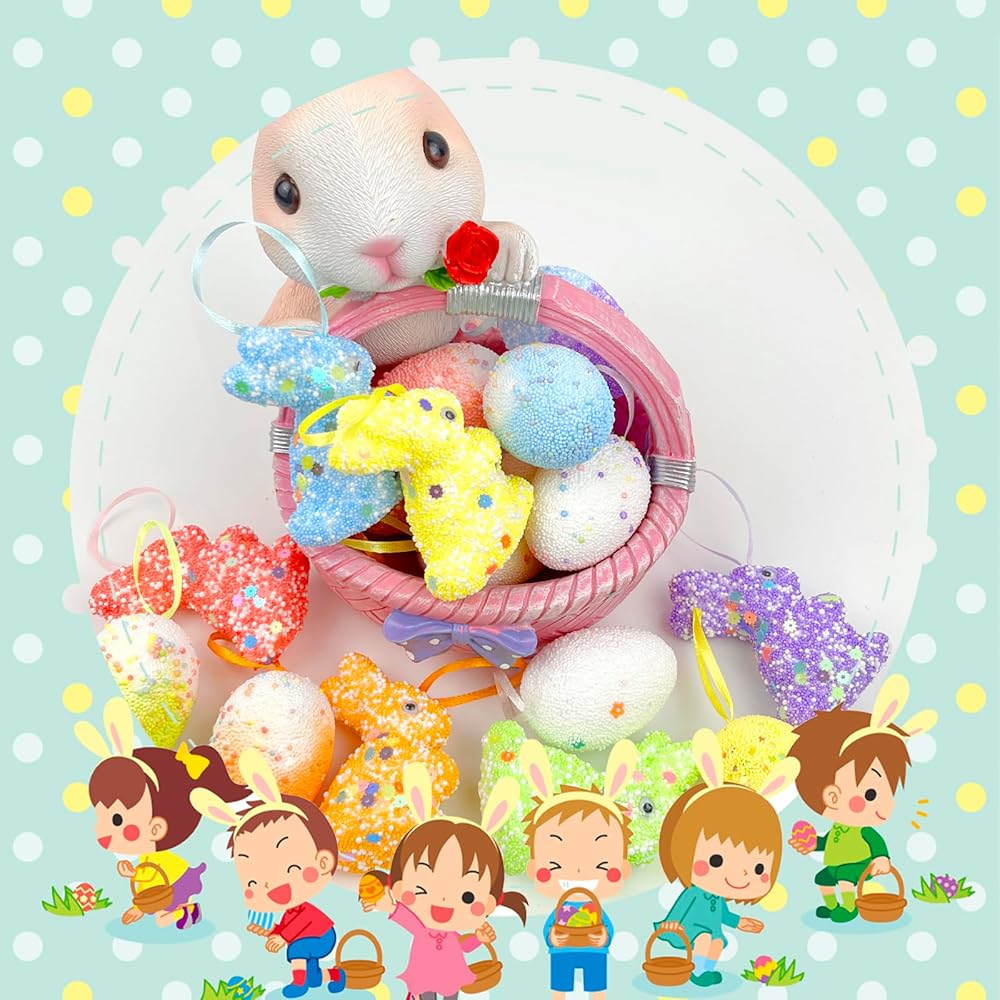 • 🐰[DIY Egg Rabbit Decoration]:Delicate and unique patterns and bright colors, it is easy to attract others' attention and bring vitality to the upcoming Easter. Eggs are made of lightweight, strong foam, safe, non-toxic, and not easy to wear and fade. They can meet your matching and DIY needs to create original decorations.