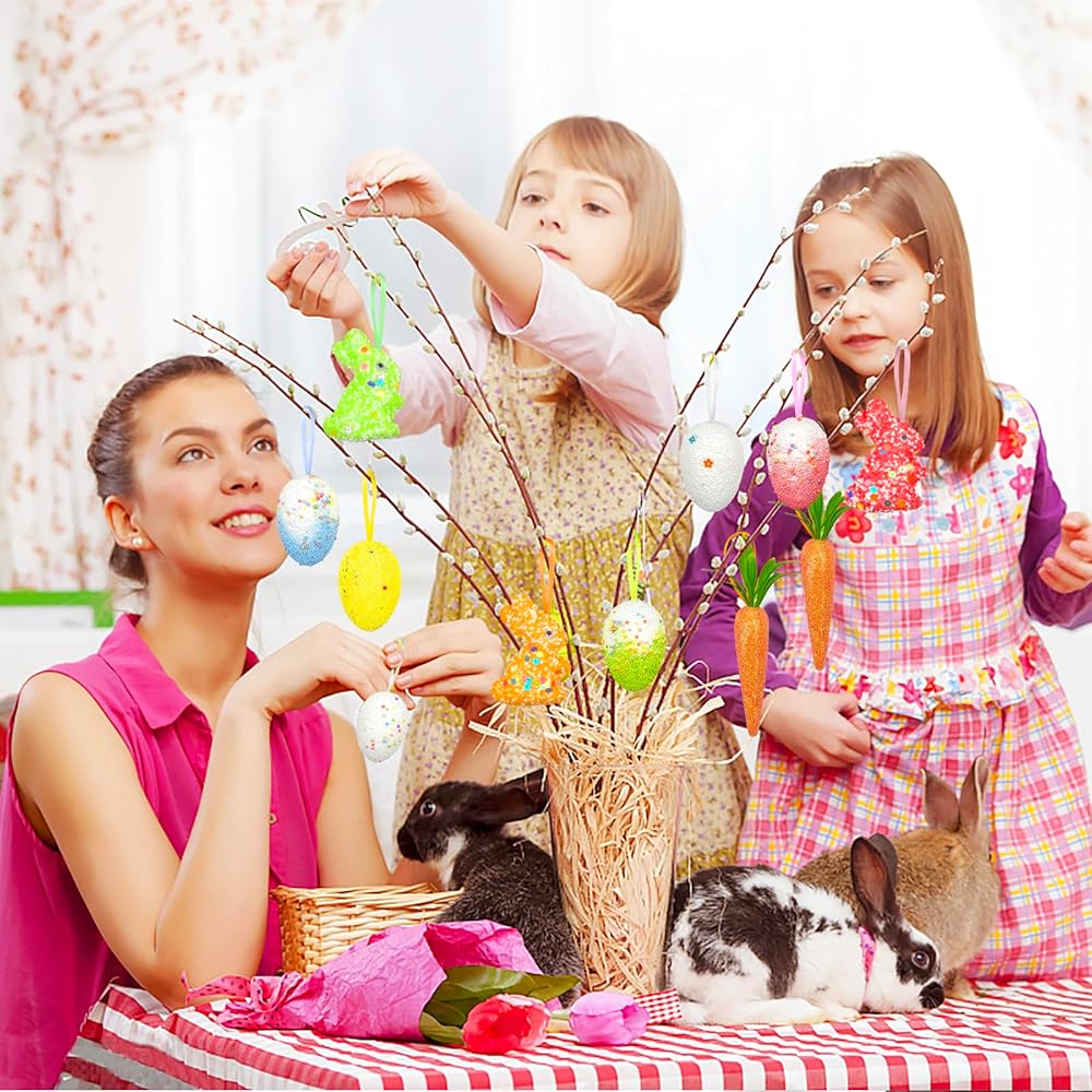• 🎄[easy to Use]:Foam Easter eggs, cute bunny carrots with cute eggs, the perfect Easter dress, can be easily hung on Easter trees, beds, walls, Windows, mantel, etc. These Easter decorations add a touch of Easter and spring.