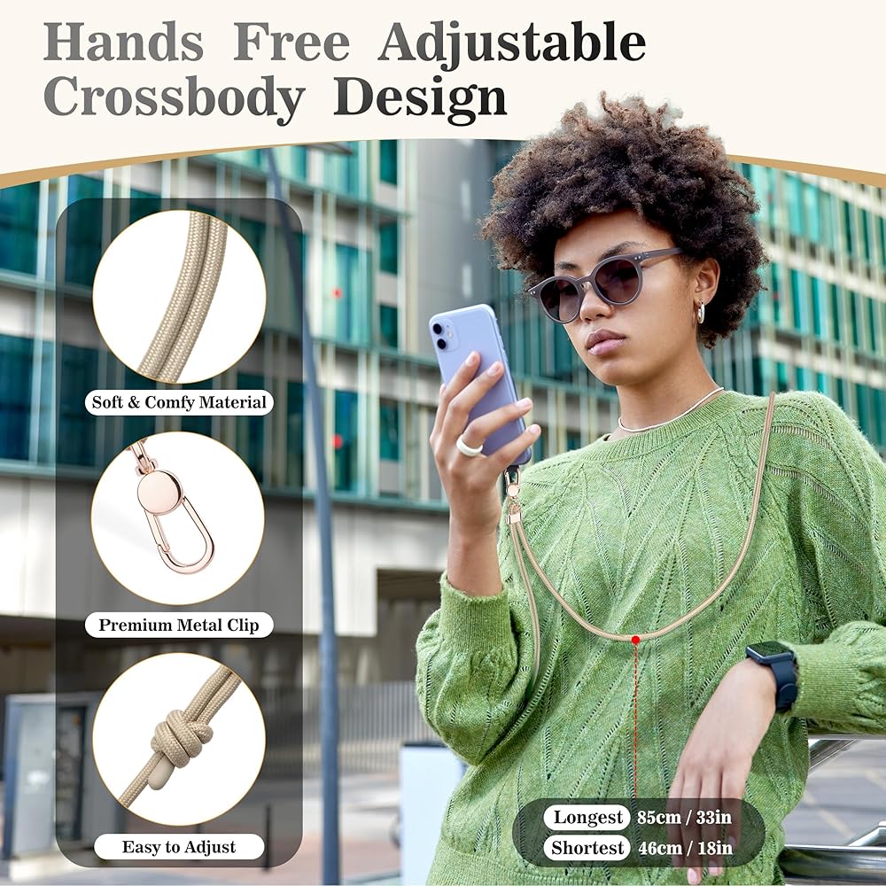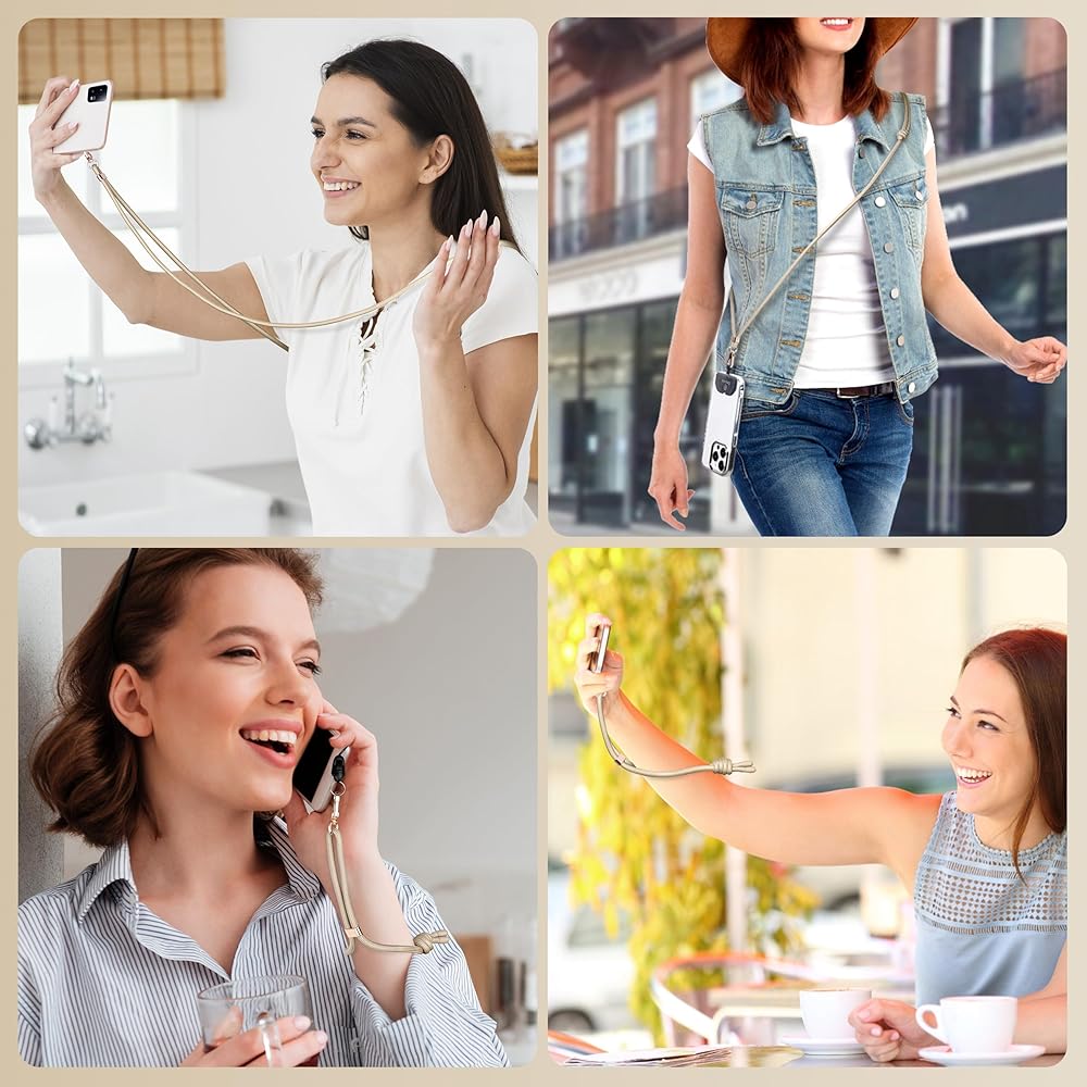 • 【راحة بدون استخدام اليدين】: حرر يديك باستخدام حزام الهاتف والسوار القابل للتعديل. تسمح لك حبال الهاتف حول الرقبة بتخصيص الطول حسب تفضيلاتك. مثالي لسهولة الوصول إلى الهاتف أثناء الأنشطة المختلفة مثل التسوق أو السفر أو التقاط الصور. ابق حر اليدين ومتفاعلاً مع الحاضر.