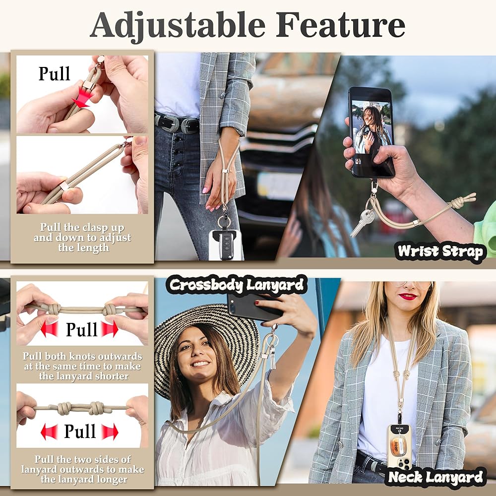 حزام حبل الهاتف العالمي: حبل قابل للتعديل للهاتف الخلوي مع حزام معصم الهاتف وحبال الهاتف