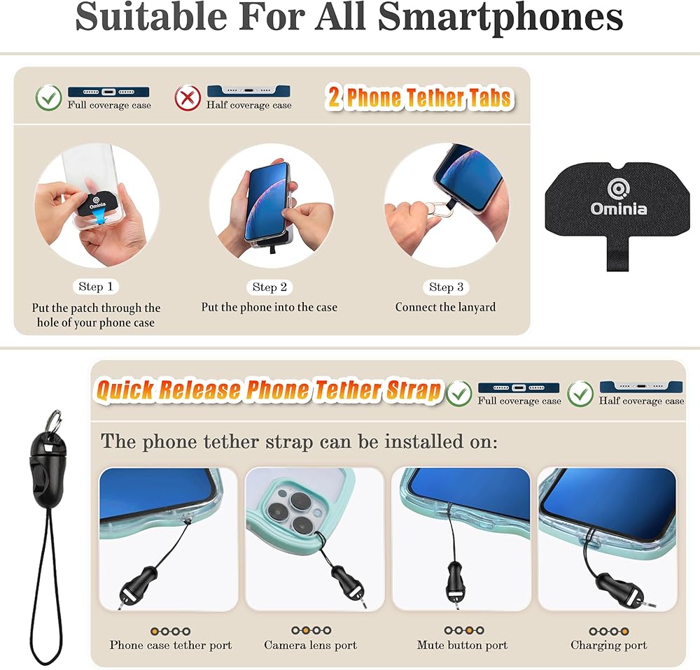 • 【يناسب جميع الهواتف المحمولة】: حبل هاتف عالمي لهاتف iPhone وSamsung وجميع الهواتف الذكية الأخرى مع أي جراب من 4 إلى 6.7 بوصة بشكل آمن.