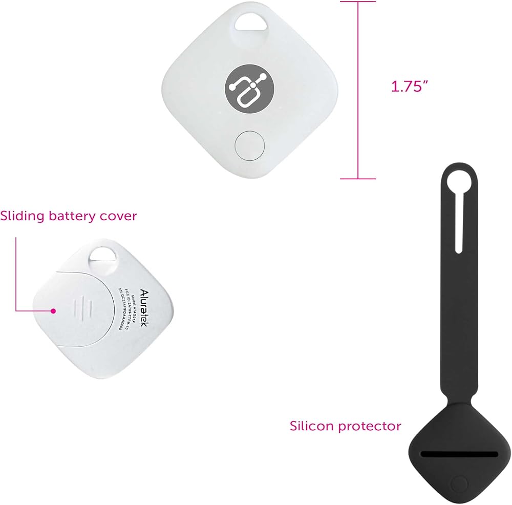 - Aluratek Track Tag Tracker هو جهاز صغير وخفيف الوزن يمكن توصيله بمفاتيحك أو حقيبة ظهرك أو أمتعتك أو أي عنصر شخصي آخر تريد تتبعه.