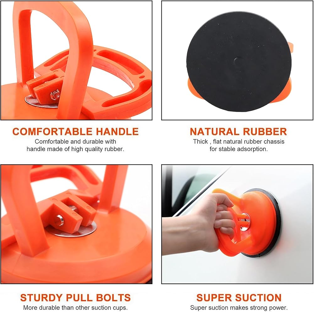 • مواد عالية الجودة: أداة سحب الانبعاجات الخاصة بنا مصنوعة من المطاط الطبيعي وABS عالي الجودة، مطاط عالي القوة ناعم جدًا ولن يسبب أي ضرر للسيارة، يمكن أن يتحمل ABS الضغط الكبير، ويسحب الانبعاج بسهولة من السيارة . مقبض ناعم وتصميم قفل زنبركي، هيكل دقيق، توتر قوي ومتين، ليس من السهل تشويهه.