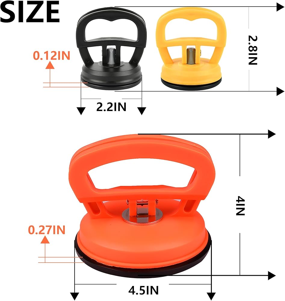 • 3 عبوات من أدوات إصلاح الانبعاجات: 1 × 4.64 بوصة كوب شفط، 2 × 2.25 بوصة كوب شفط، 1 منشفة، مجموعة أدوات إصلاح انبعاجات كوب الشفط تسمح لك بإزالة الضربات والخدوش الصغيرة في مناطق معينة من سيارتك. (يرجى التأكد من أن توجد انبعاجات على السطح المستوي ويجب أن تكون أكبر من قطر كوب الشفط السفلي.)