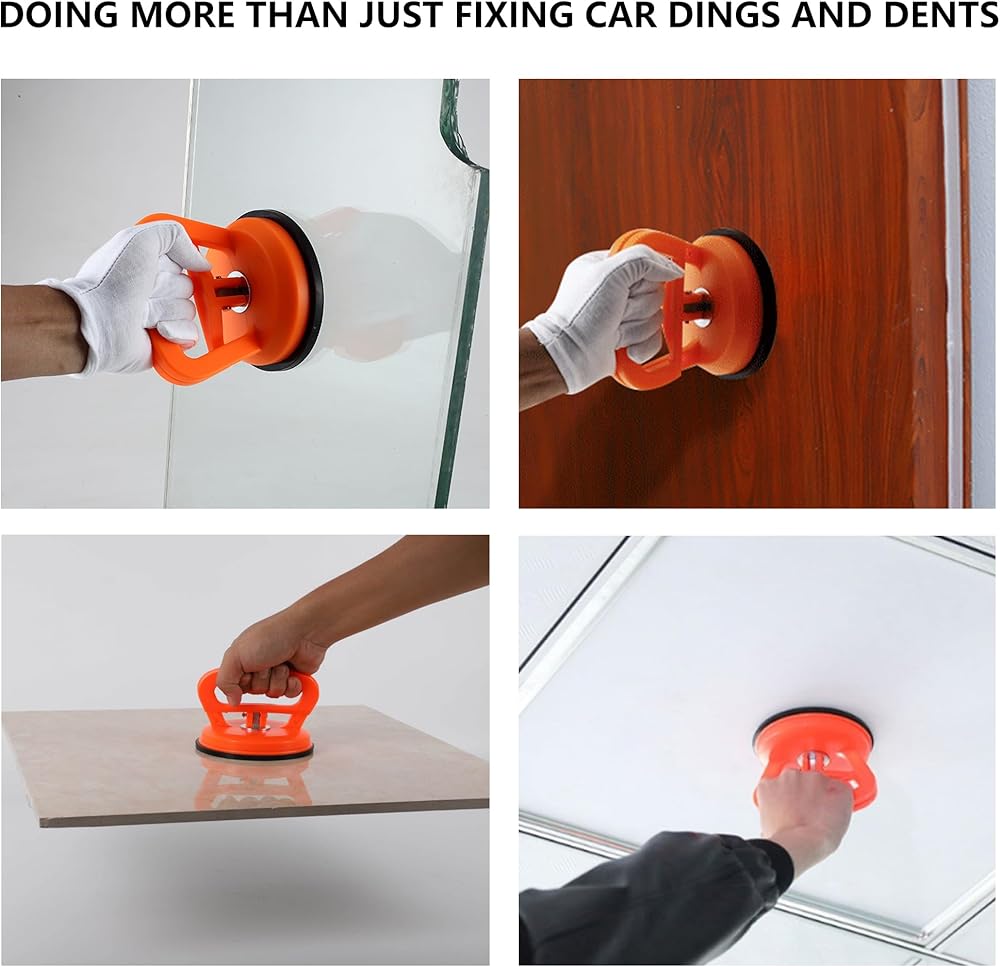• سهل الاستخدام: أولاً، قم بتنظيف السطح وتجفيفه. ثانيًا، اضبط مقبض أداة سحب انبعاجات السيارة على الحالة المنفصلة. بعد ذلك، ضع أداة سحب الانبعاج بالشفط على السطح وادفع للأسفل للضغط على الهواء. أخيرًا، اسحب المقبض المزدوج إلى الوضع الأعلى ويمكنك سحب المقبض بقوة.