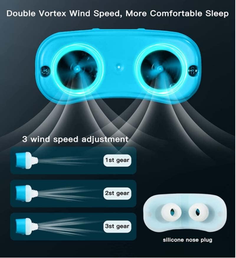 Top quality: This snoring prevention device is made of high-quality medical soft and comfortable silicone and abdominal muscles, completely free of bisphenol A and non-toxic. The newly upgraded anti snoring device adopts a dual vortex design, with adjustable three speed wind speed, smooth breathing, and more comfortable sleep.