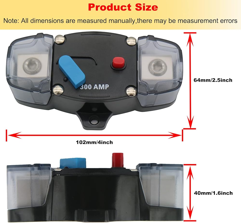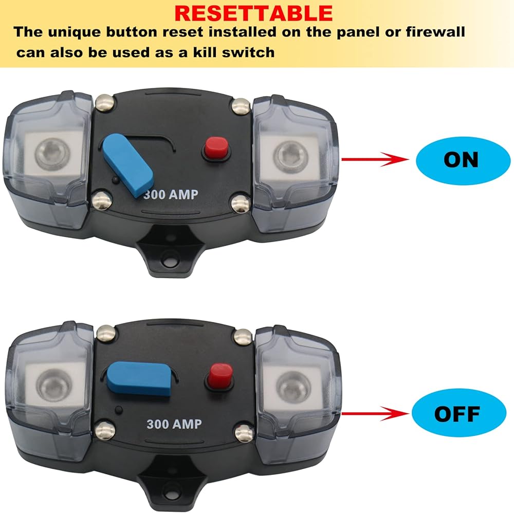 AUTENS 300A circuit Breaker Providing protection in overload or short circuit conditions. don't need to worry about your trolling motor from electrical damage. as fuse burn-out with thermal automatic reset feature, power protected when circuit is overloaded / shorting by this overcurrent circuit breaker.
