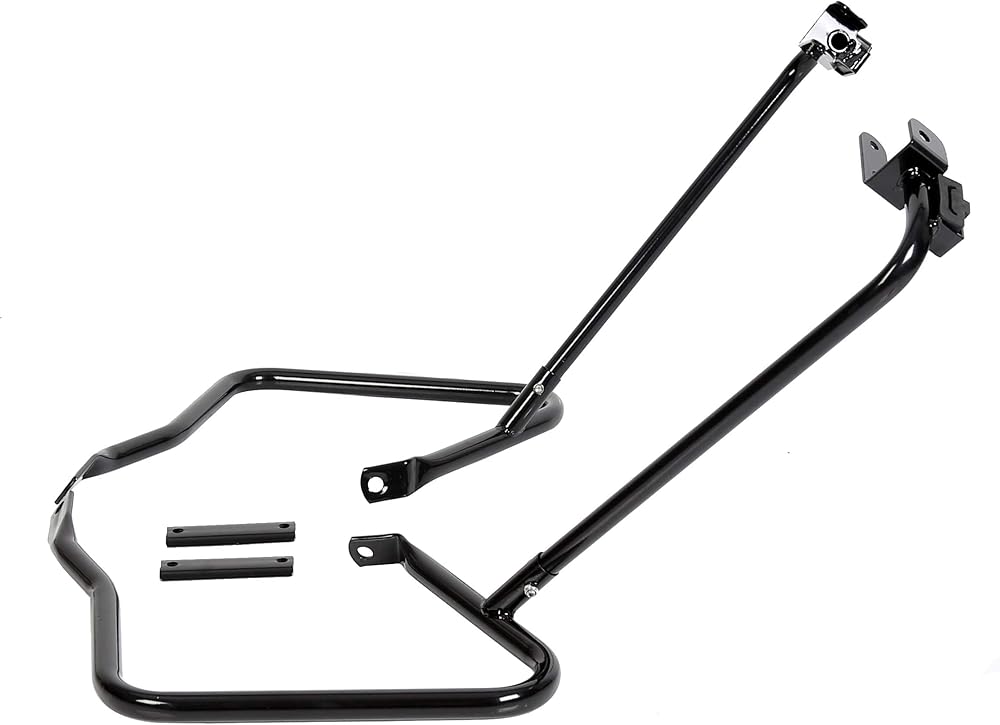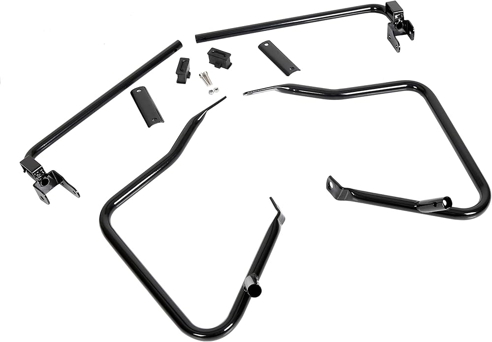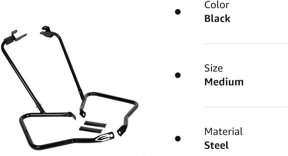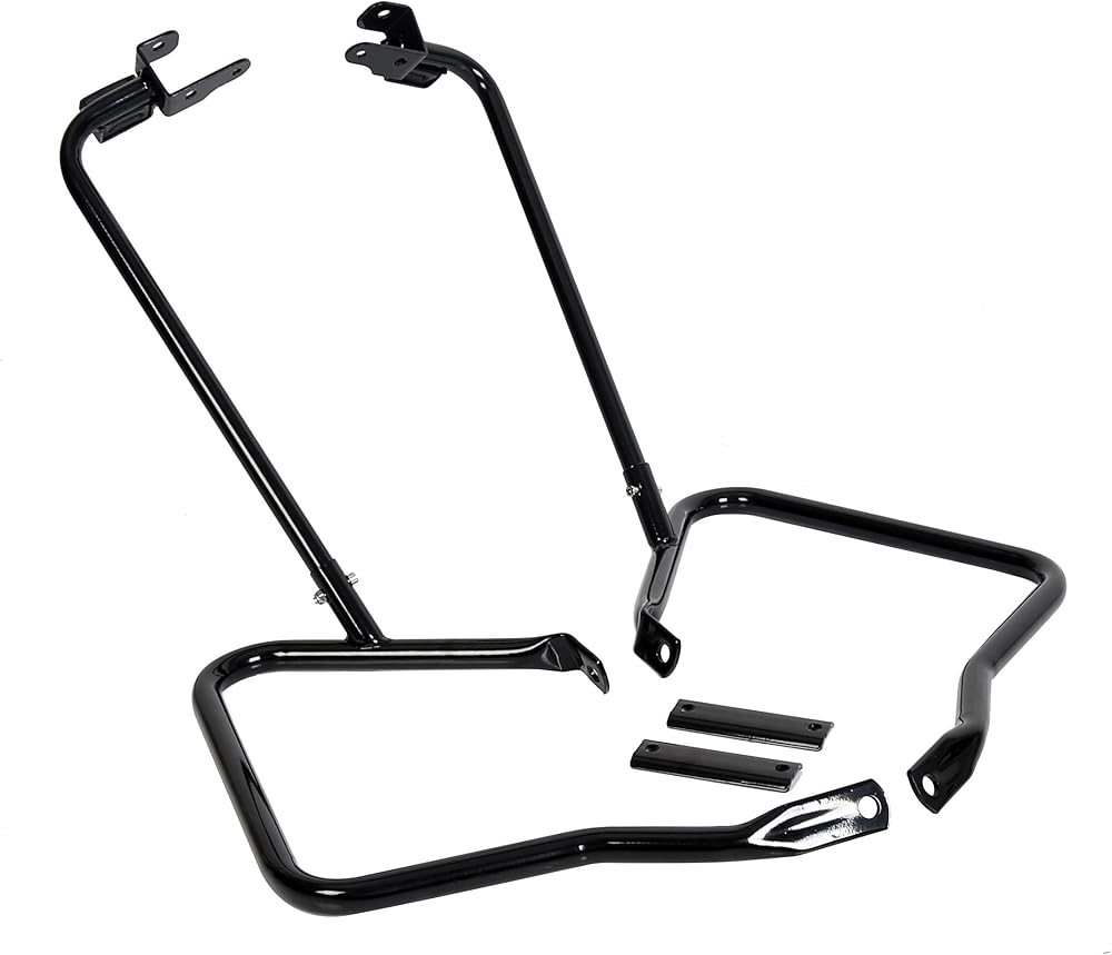 • Package: Includes saddlebag supports, left & right guards and mounting hardware. Easy to install, no installation instructions. This black saddlebag bracket guard bar can be easily installed on your motorcycle.