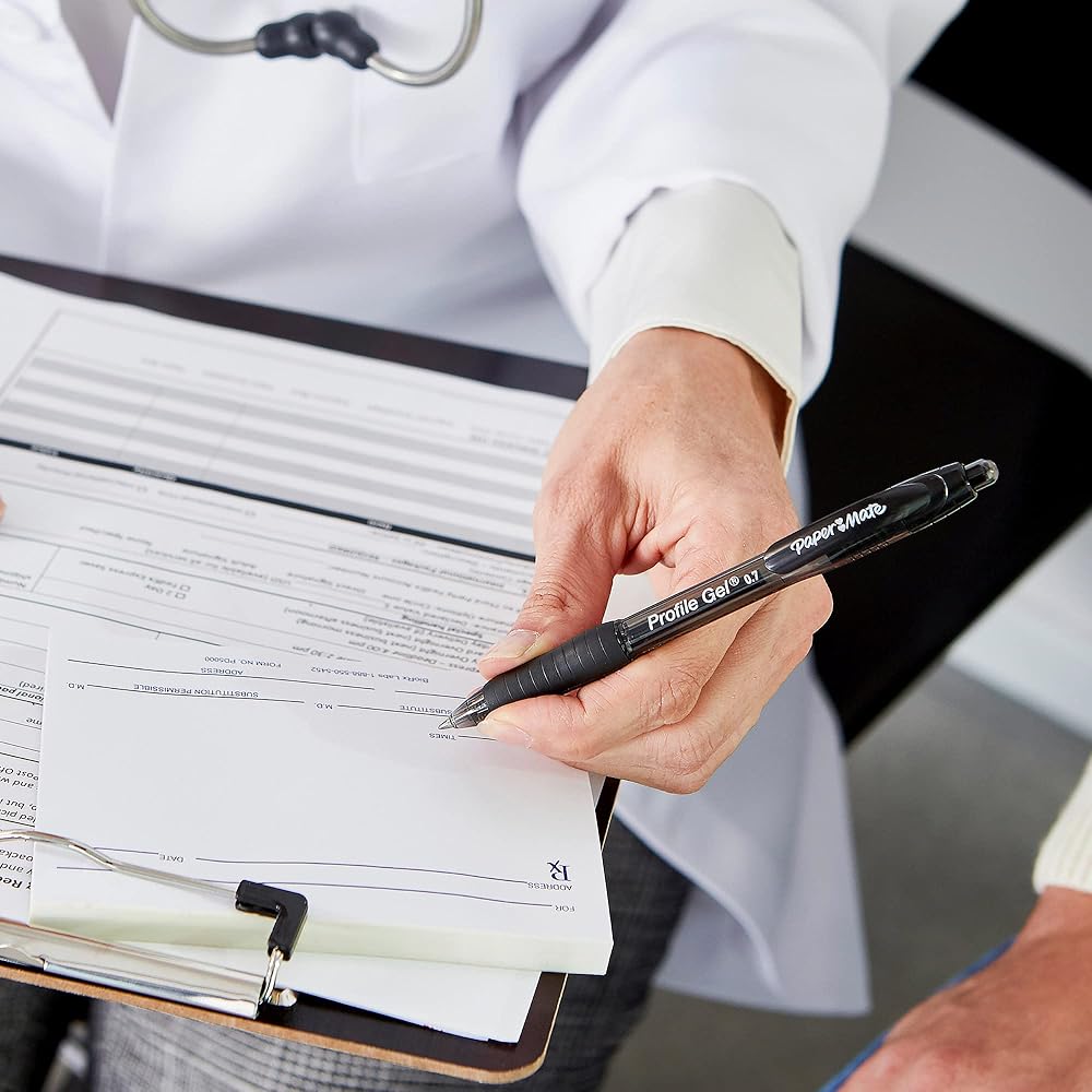 For ultra-smooth, colorful writing, turn to Paper Mate Profile Gel pens. These retractable pens feature vibrant ink that stands out on the page. A soft grip lets you write comfortably, no matter the writing task. Each gel pen has an easy-glide 0. 5mm tip that lays down beautiful yet fluid lines.