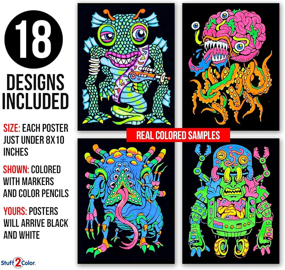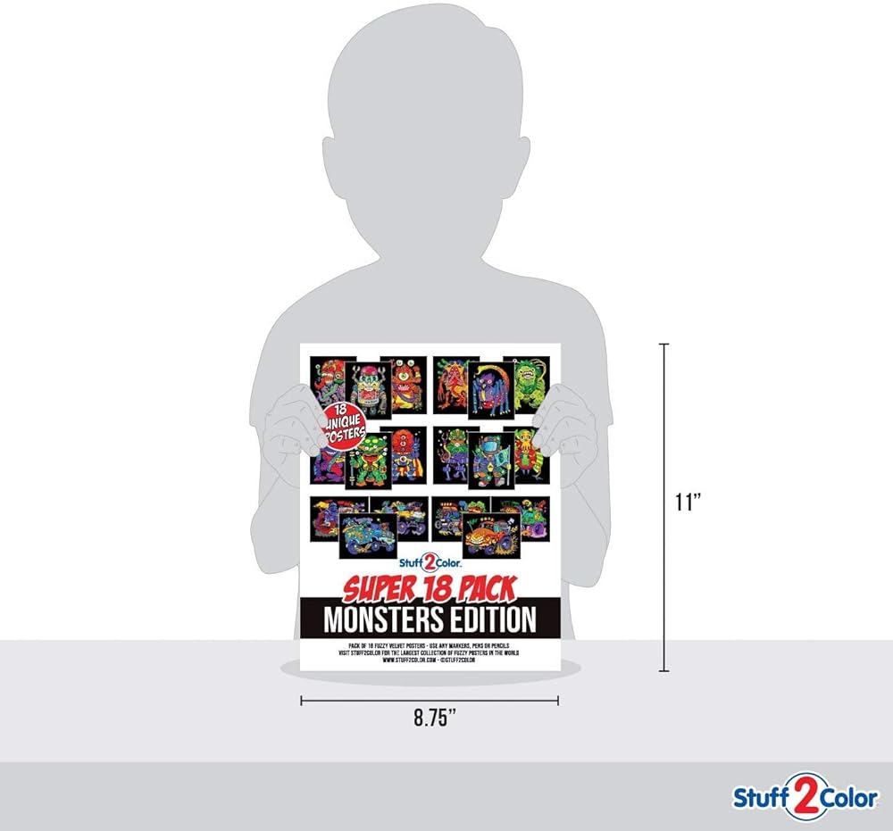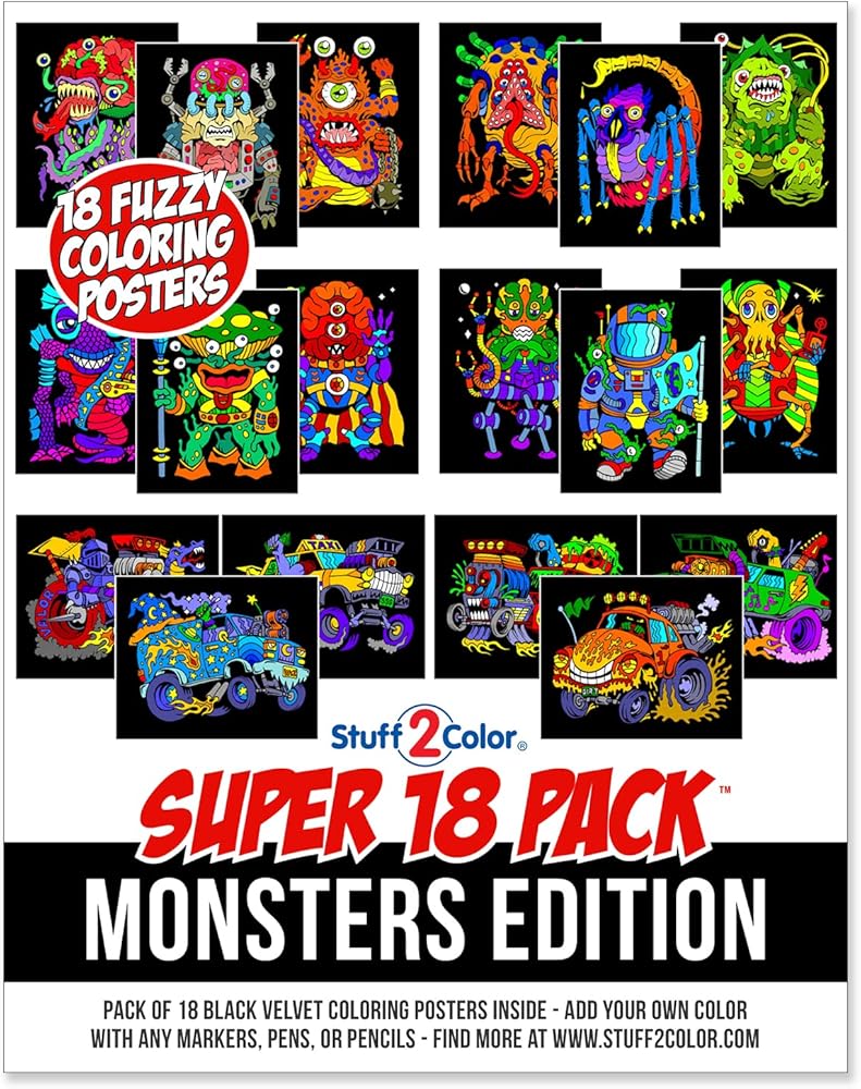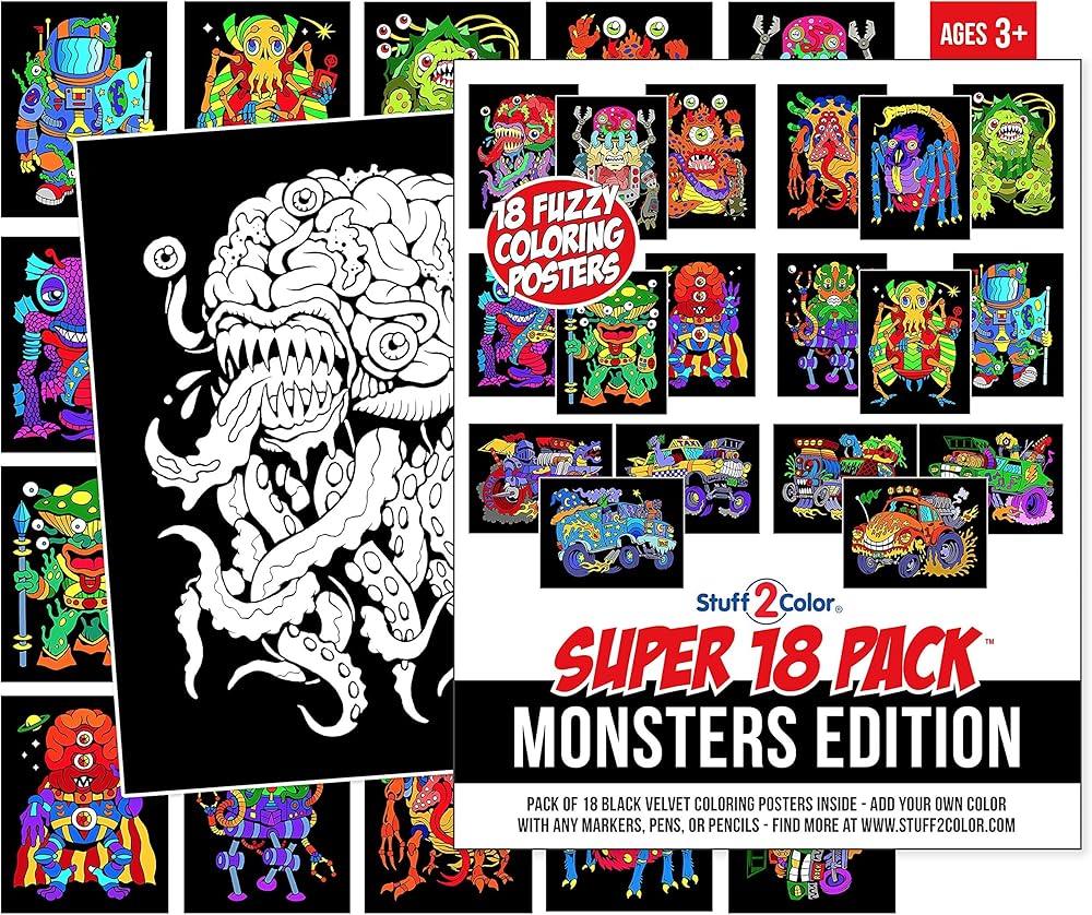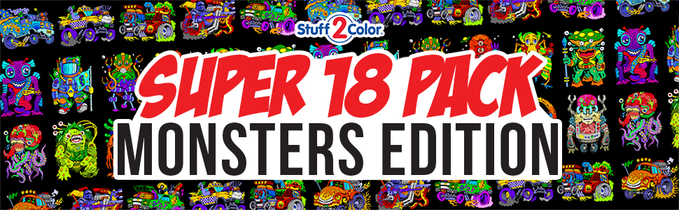 مجموعة Stuff2Color الفائقة المكونة من 18 ملصق تلوين غامض (إصدار الوحوش) - الفنون والحرف اليدوية للأولاد والبنات والأطفال الصغار والأطفال - نشاط تلوين رائع، أو مشروع مشاركة جماعي، أو متعة وقت هادئ