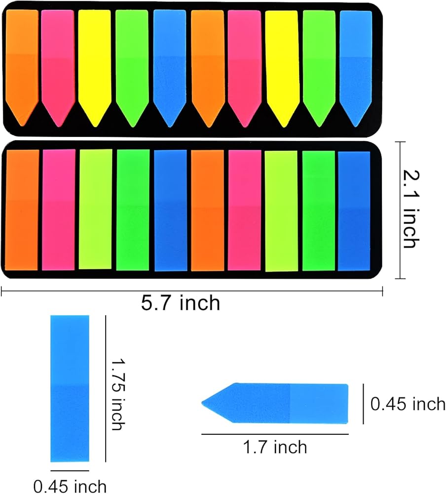• 5. العبوة: تتضمن 1200 قطعة شريط لاصق بخمسة ألوان، شكلين عبارة عن 3 مجموعات على شكل مستطيل و3 مجموعات على شكل سهم. سهل الاستخدام أينما كنت.