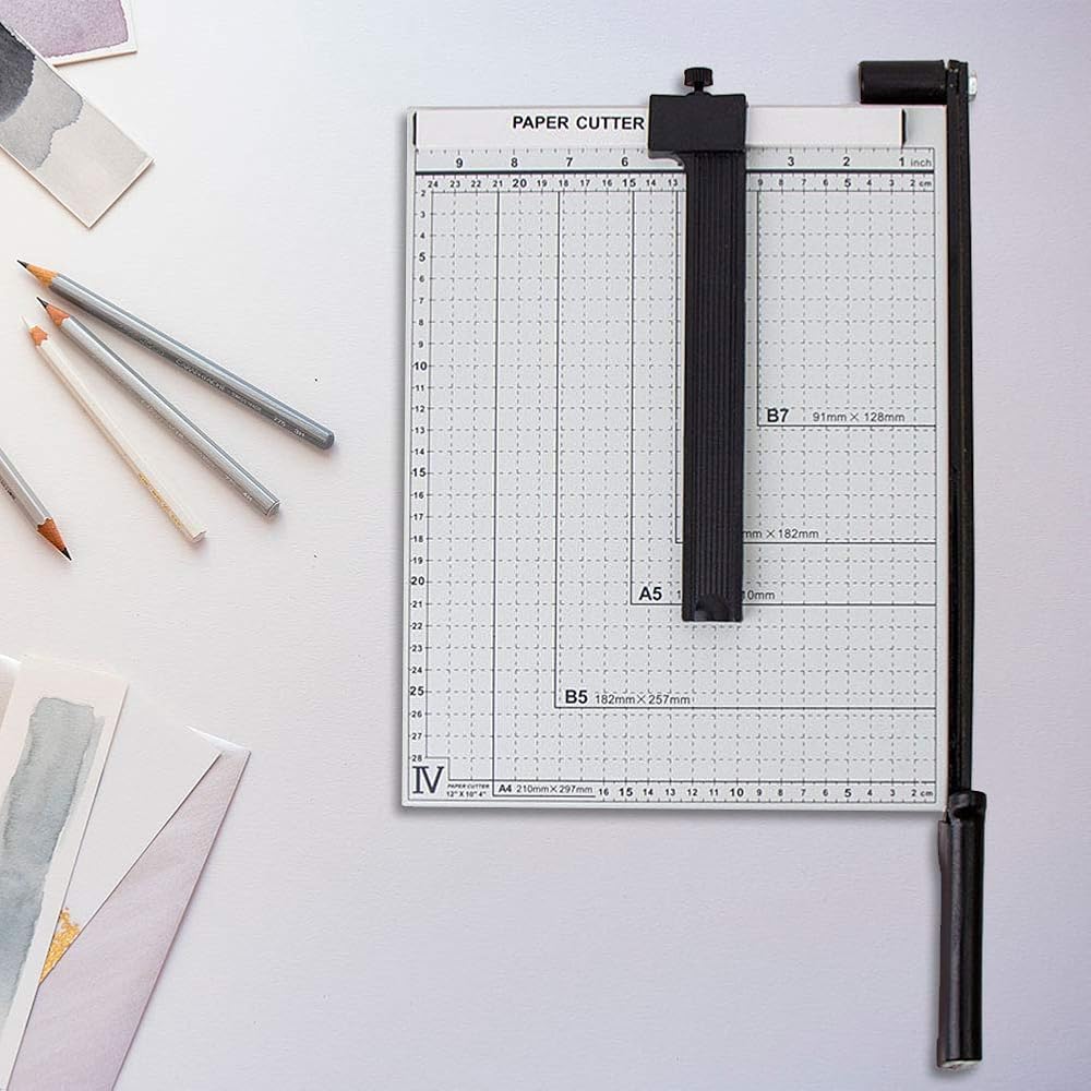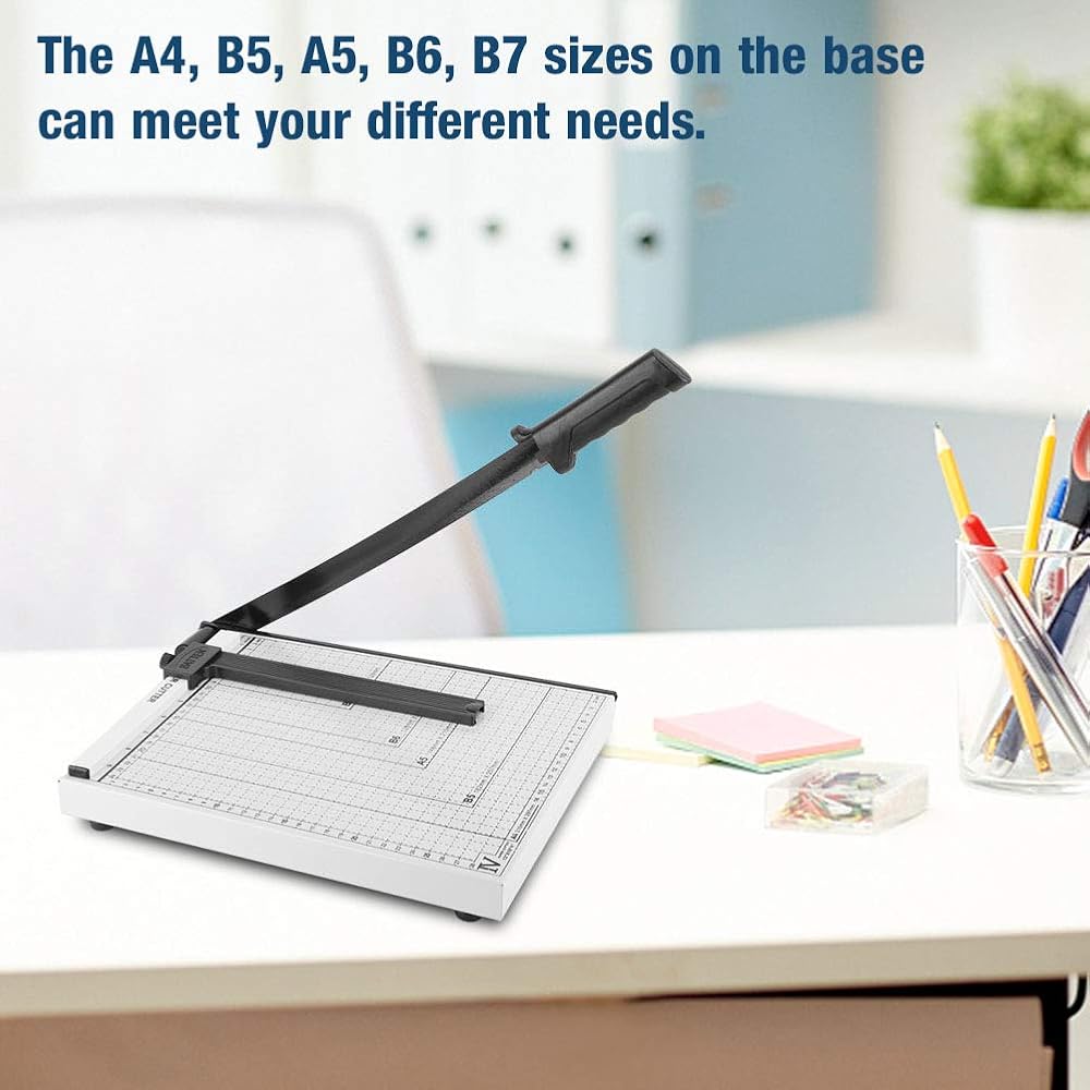 DIFFERENT SIZE OPTIONS: Different size options are marked on the base of the paper cutter, such as A4, B5, A5, B6, B7, etc. By choosing the paper size that suits your needs, you can accurately cut the paper that meets your needs on the paper cutter size. Make sure the paper you cut is the correct size