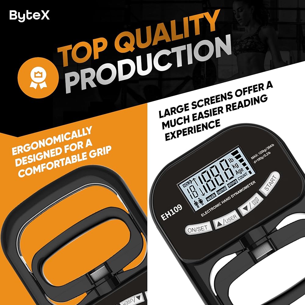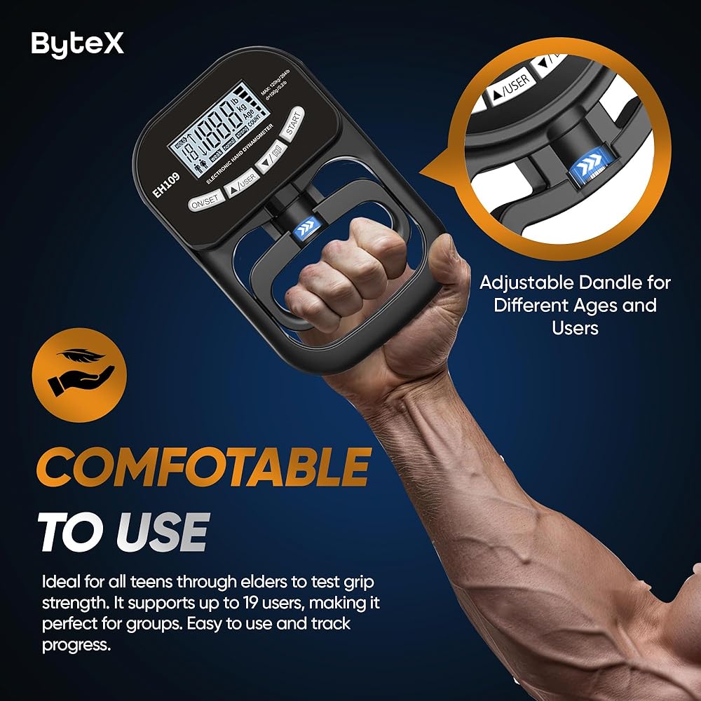 The hand dynamometer, equipped with a high precision strain gauge sensor, offers accurate digital readings of grip strength up to 265lbs (120kgs), ideal for professionals like physical therapists and athletic trainers. Its user-friendly design features an easy-to-read display, adjustable handle length for various hand sizes, and a lightweight construction, making it more convenient than traditional manual models. Constructed from high-quality materials, this device is both sturdy and durable, suitable for anyone looking to track improvements in grip strength through exercises like pull-ups. It can store up to 19 user-defined data entries for tracking progress over time, with the capability to display incremental changes after each test. This versatile tool is essential for athletes in sports like rock climbing and wrestling, serving as a crucial health indicator in both clinical and home settings.