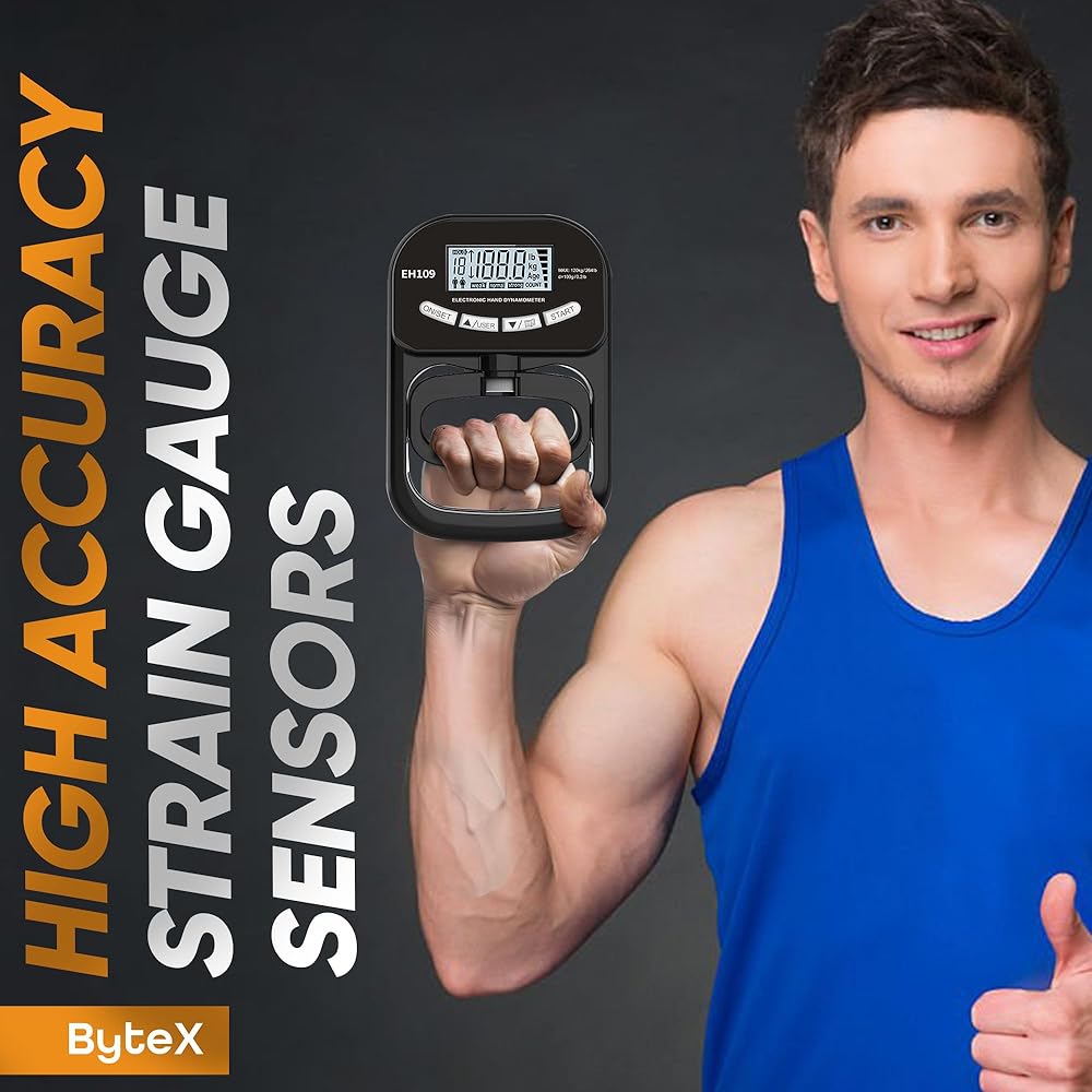 Accurate and High-Capacity Measurement - With its high precision strain gauge sensor, the hand dynamometer offers precise and immediate digital readings of grip strength, ranging up to 265lbs (120kgs), suitable for a wide range of professionals including physical therapists and athletic trainers.