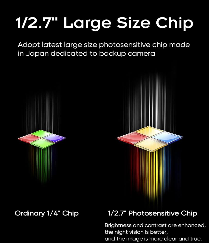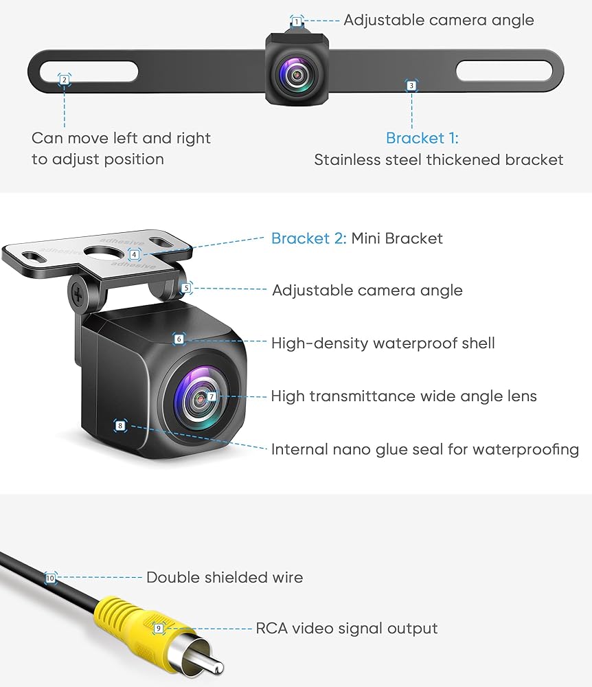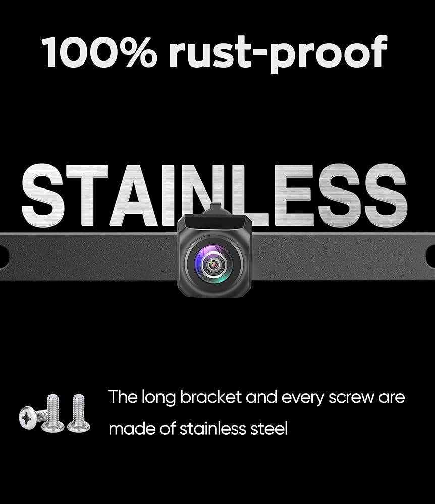 【مقاومة فائقة للصدأ ومقاومة للماء】جميع الأجزاء المعدنية للكاميرا الاحتياطية PAHD-2P للسيارات مصنوعة من الفولاذ المقاوم للصدأ (بما في ذلك جميع أنواع البراغي) لمنع كاميرا الرؤية الخلفية للسيارة من الصدأ والتلف عندما تكون في بيئة رطبة. لفترة طويلة. عادة ما تتسرب المياه في كاميرا الرؤية الخلفية من خلال العدسة، لذلك اخترنا استخدام عدسة بصرية عالية الجودة ذات شفافية عالية مع حامل معدني لتقليل احتمالية الضرر بسبب تسرب المياه.