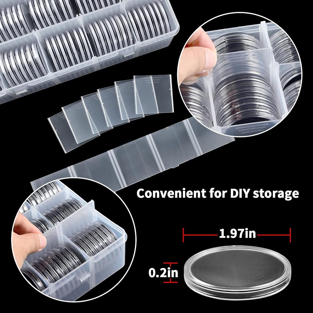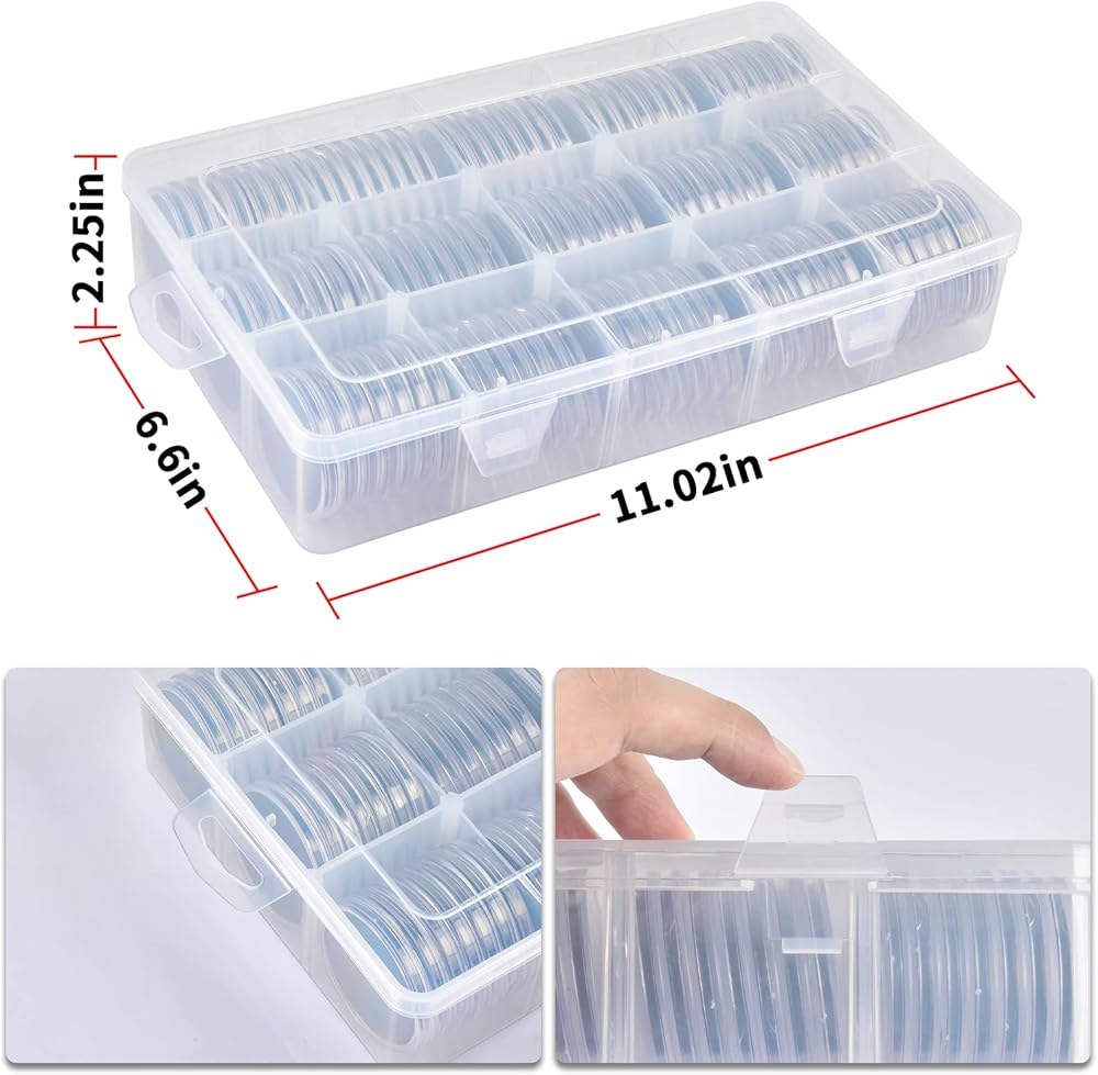 صندوق كبسولات العملات المعدنية سهل الاستخدام: تصميم هلالي لكبسولات العملات المعدنية، يمكنك فتحها وإغلاقها بسهولة. التصميم الشفاف يسمح لك بالنظر إلى كلا جانبي العملات المعدنية دون لمسها، ومن السهل العثور على العملات المعدنية التي تحتاجها. يجعل من السهل جدًا تخزين وعرض.
