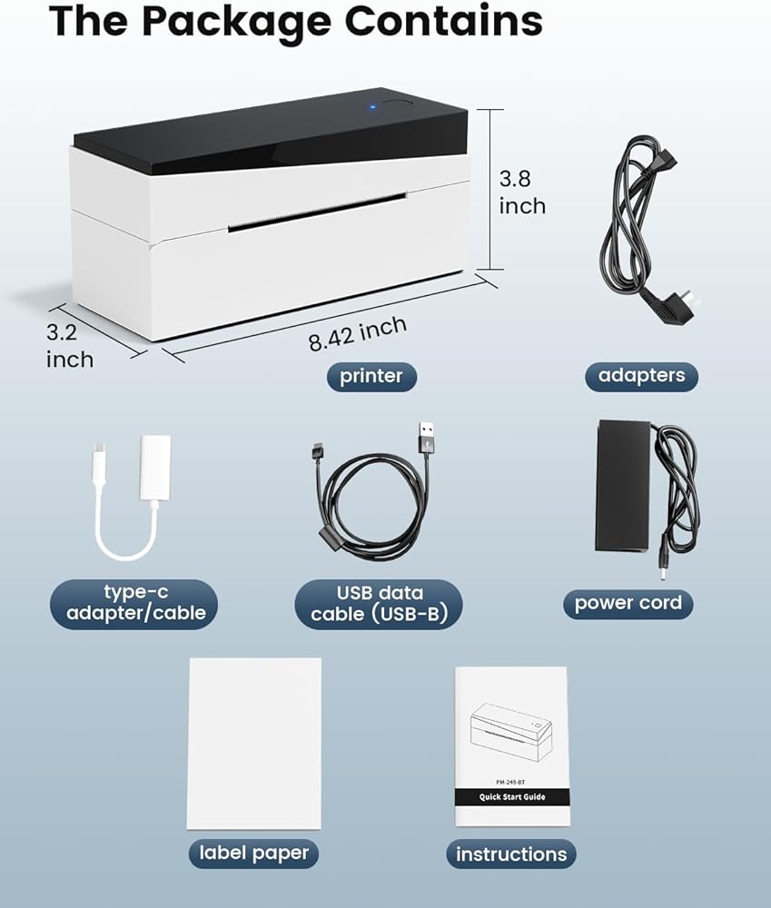 【تدوم طويلاً】تتميز طابعة الملصقات 249BT بدقة 203 نقطة لكل بوصة وسرعة طباعة تبلغ 150 مم/ثانية. الملصقات المطبوعة بواسطة طابعة ملصقات الشحن 249BT نظيفة وأنيقة ومقاومة للبهتان. لا يوجد حبر أو تونر أو مقاوم للماء أو الزيت أو له خصائص لاصقة قوية. بفضل مخرجات الطباعة عالية الجودة وسرعة الطباعة السريعة والمتانة، توفر طابعة الملصقات الحرارية التي تعمل بتقنية البلوتوث حل طباعة مناسبًا وفعالًا لاحتياجاتك.