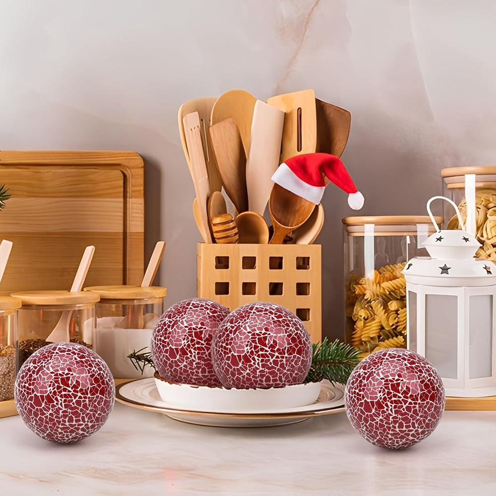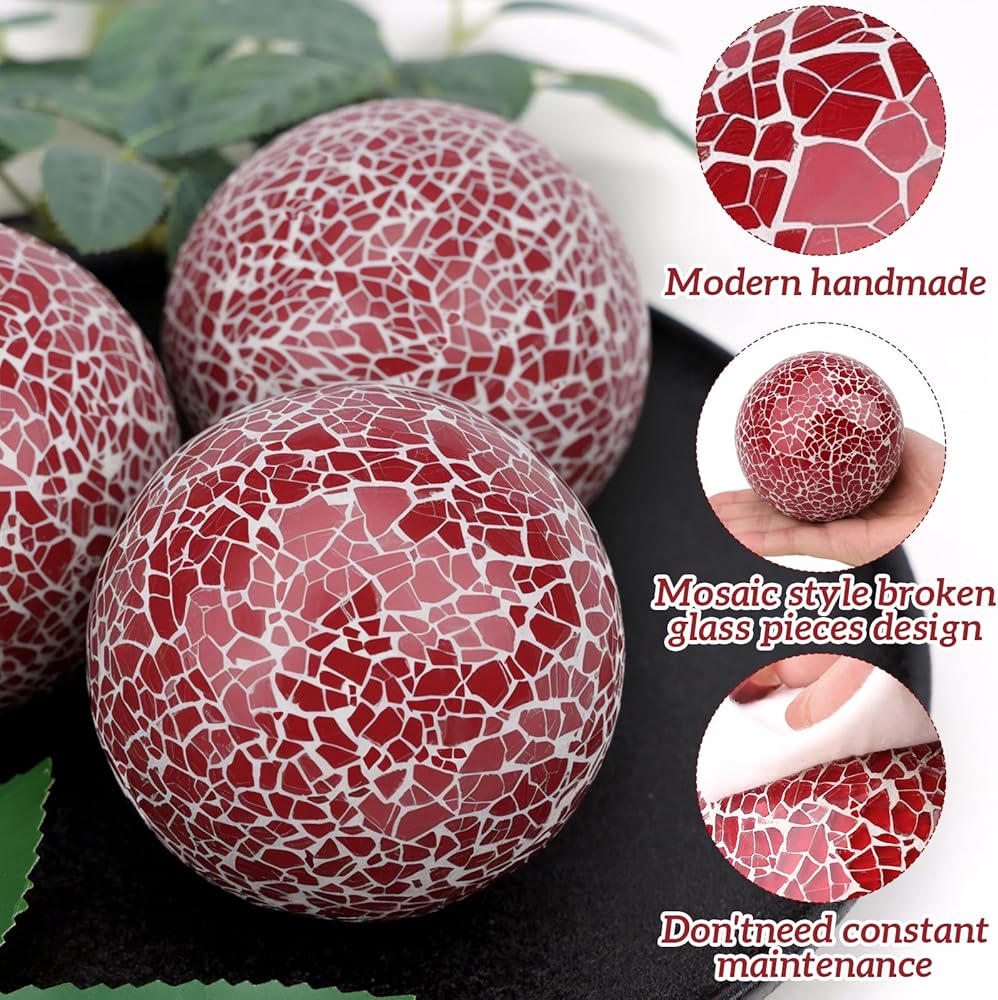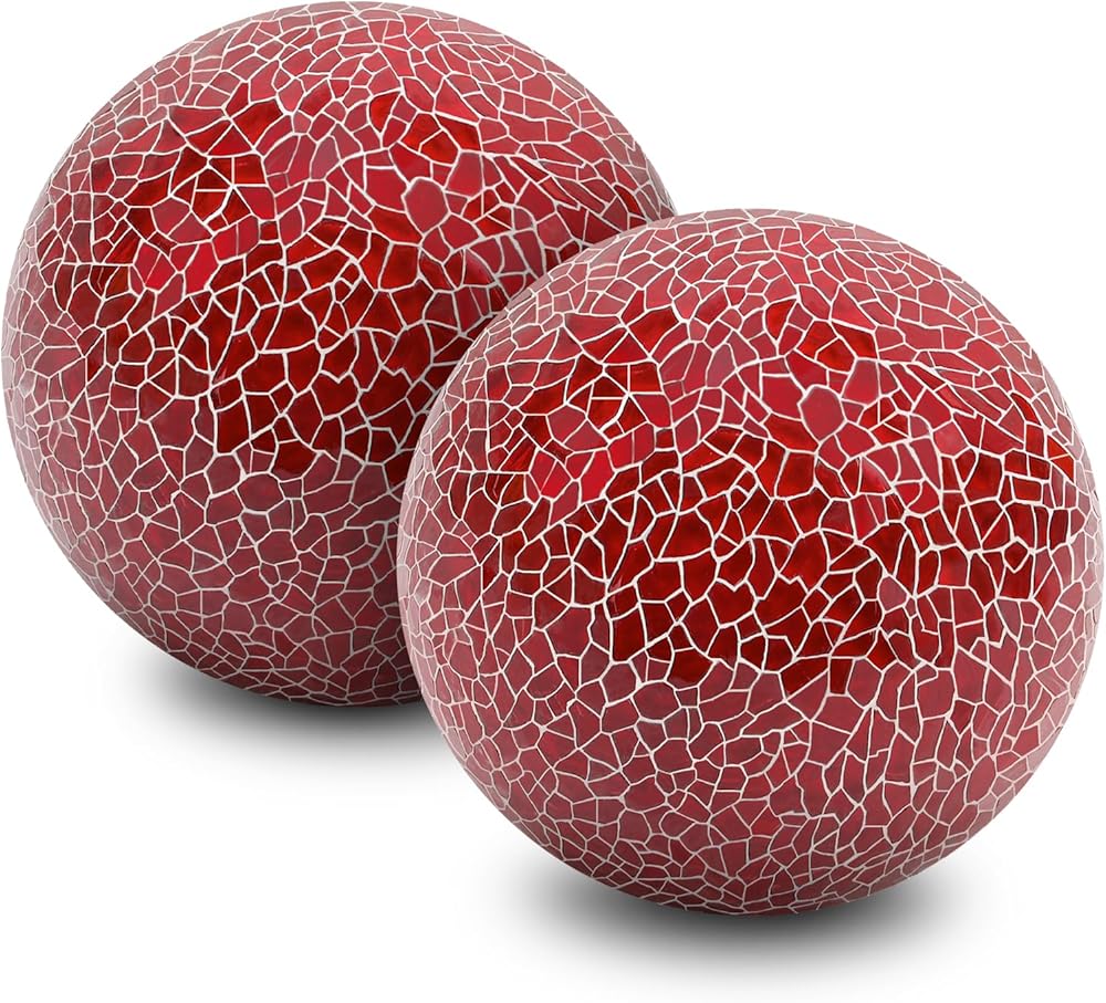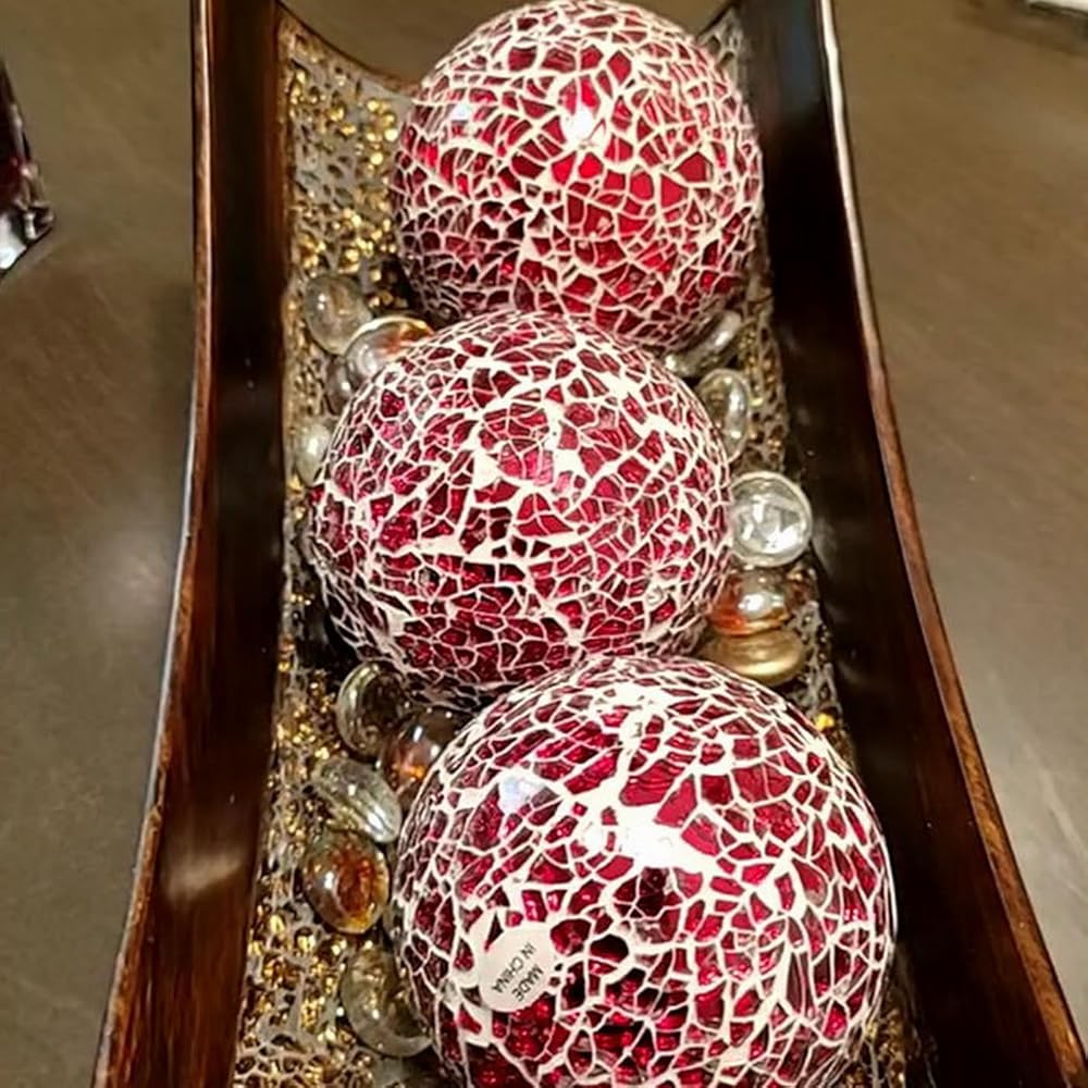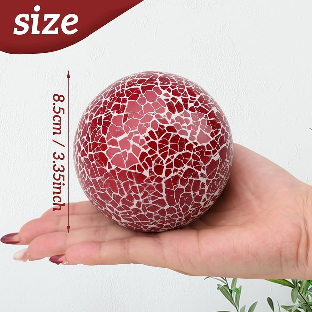 2 قطعة من كرات الفسيفساء الزجاجية الكروية المزخرفة، كرات مركزية، زينة عيد الميلاد الحمراء للأطباق والمزهريات وصينية حشو الأطباق وديكور طاولة القهوة مقاس 3.35 بوصة