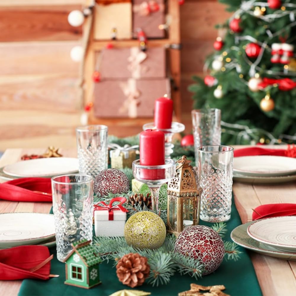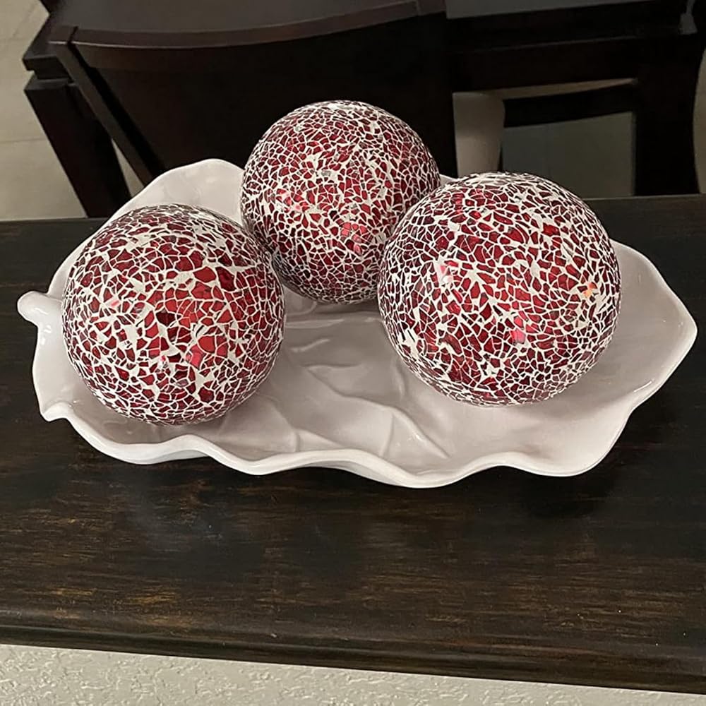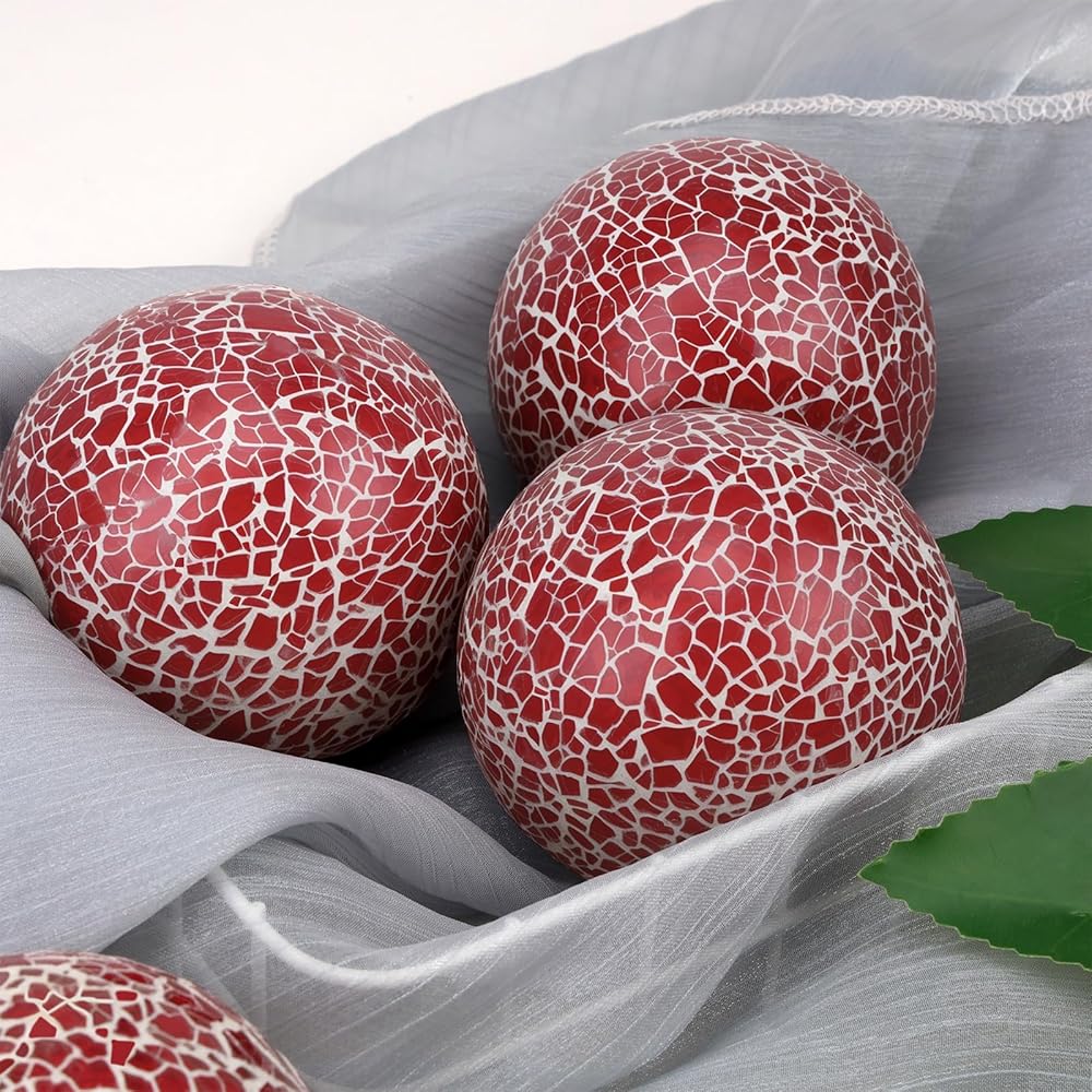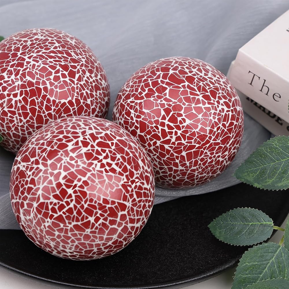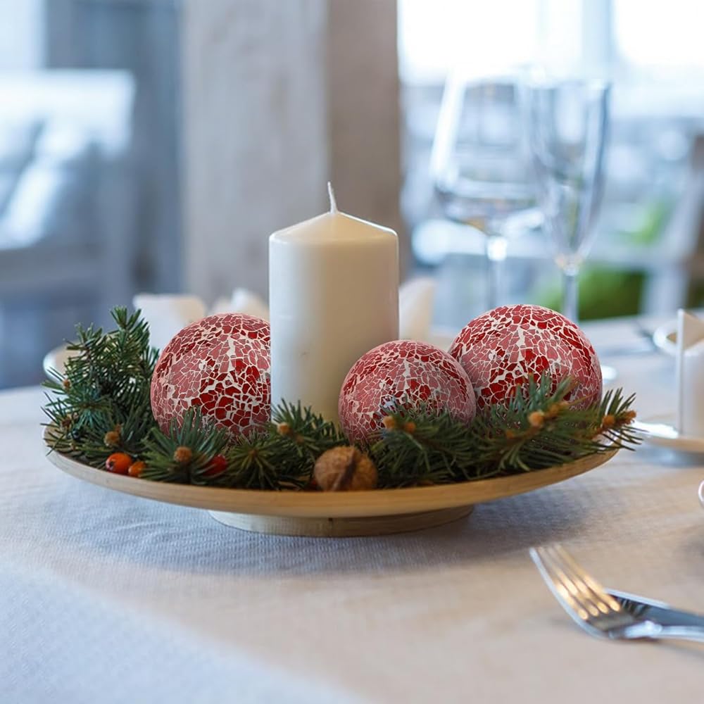 2 قطعة من كرات الفسيفساء الزجاجية الكروية المزخرفة، كرات مركزية، زينة عيد الميلاد الحمراء للأطباق والمزهريات وصينية حشو الأطباق وديكور طاولة القهوة مقاس 3.35 بوصة