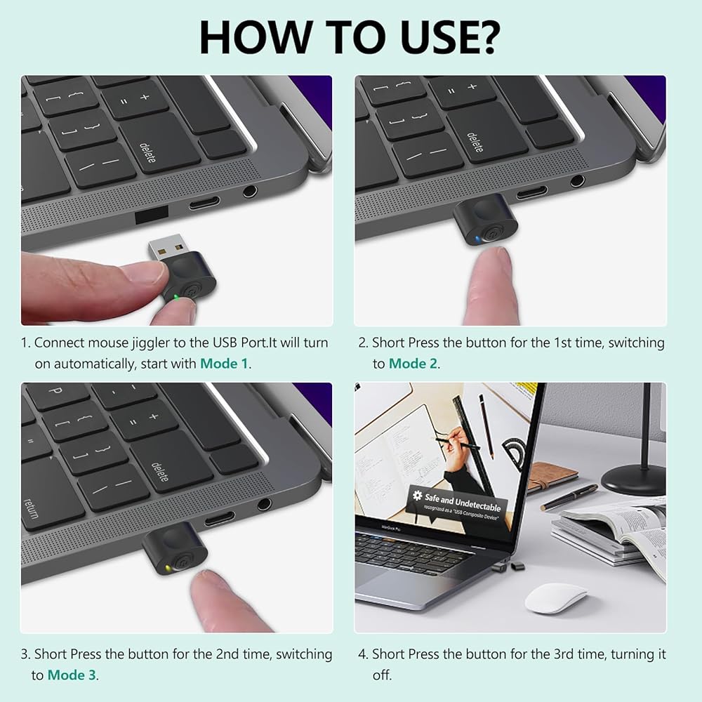 【غير قابل للاكتشاف】عندما يتم توصيل جهاز الماوس الصغير هذا بجهاز الكمبيوتر الخاص بك، يتم التعرف عليه على أنه "جهاز مركب USB"، مثل الماوس الخارجي. لذلك لا تقلق بشأن أن يتم التعرف عليه بواسطة برامج تكنولوجيا المعلومات كجهاز غير معروف/غير آمن.