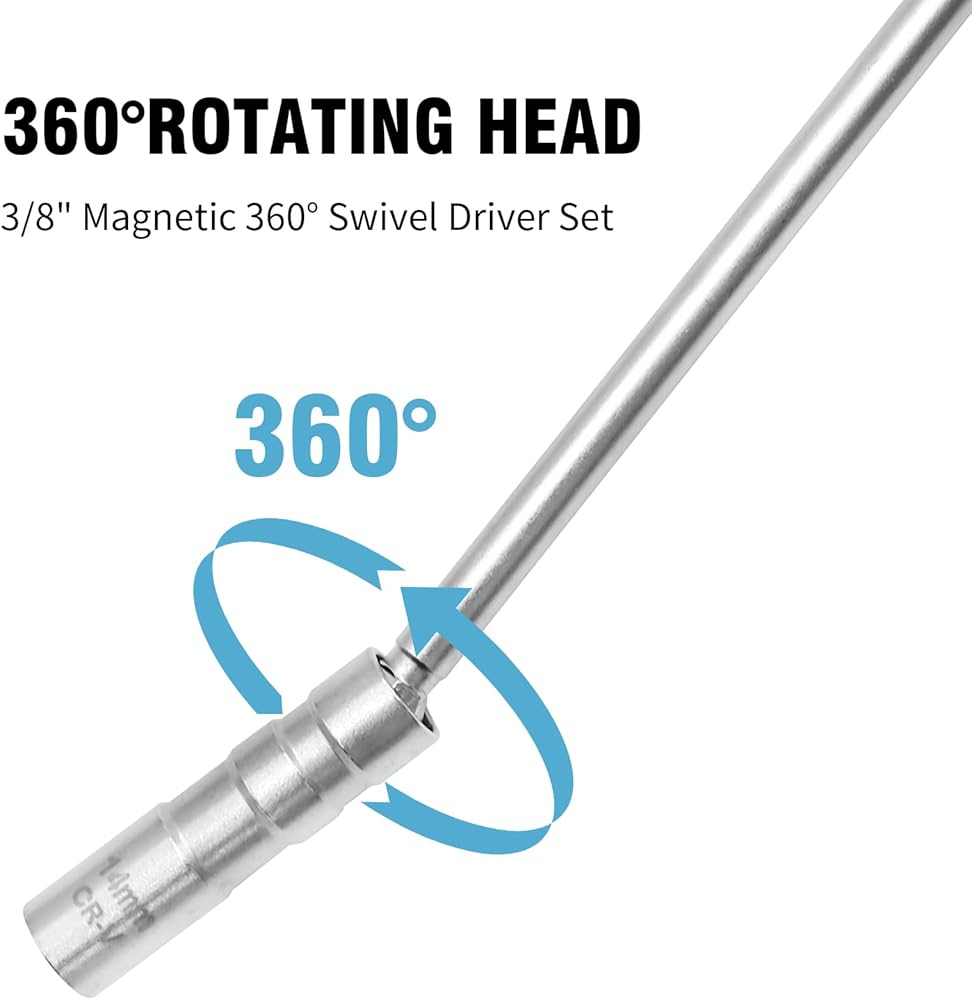 [360 Degree Swivel] Enjoy Full Range of Motion with the Swivel Magnetic Spark Plug Socket, Allowing Easy Access to Spark Plugs from Any Angle.