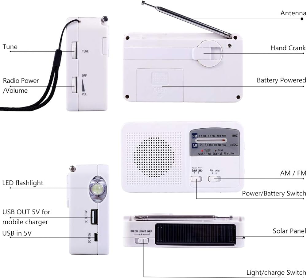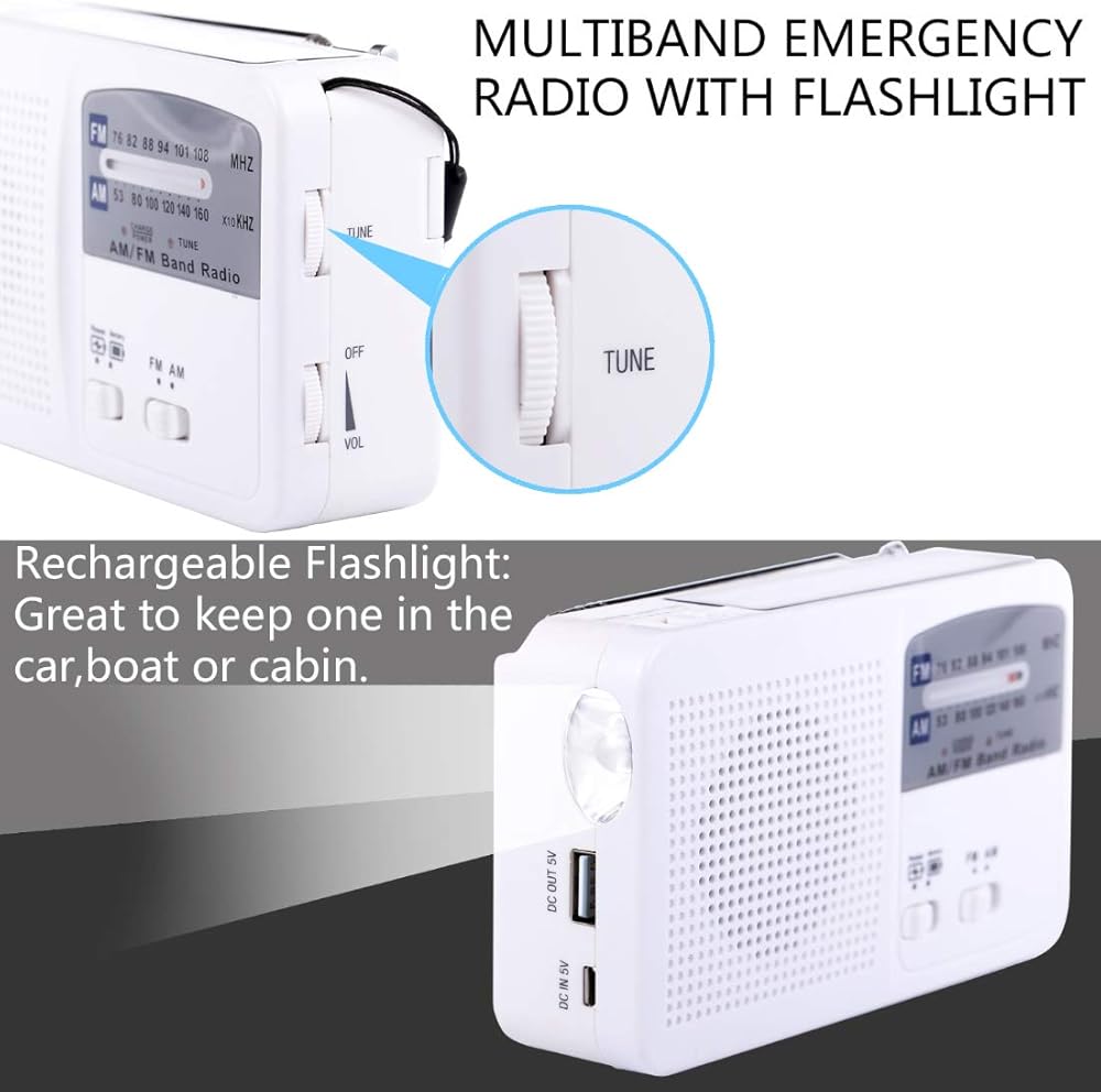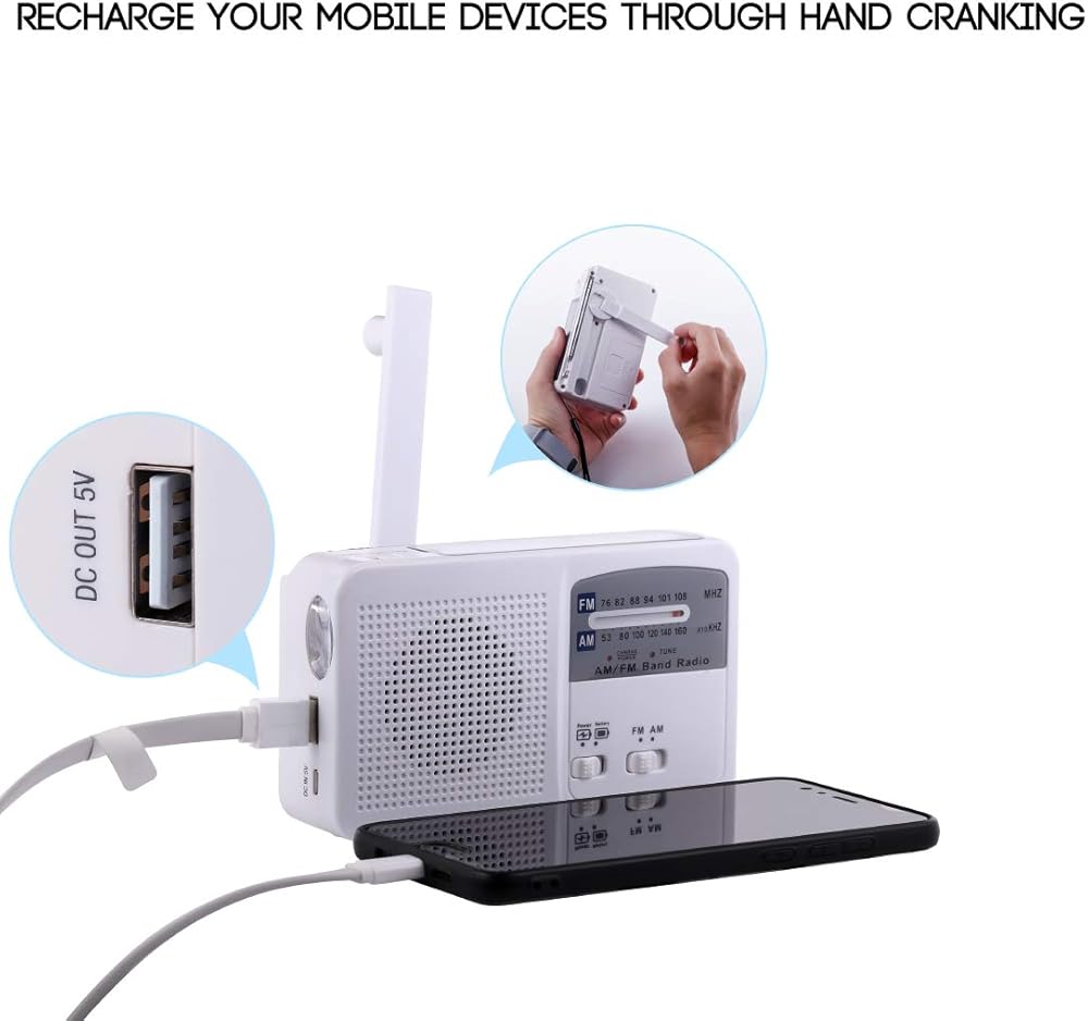 Hand crank emergency radio have crank flashlight lighting, radio am fm, emergency crank radio flashlight cell phone charger, can ues with solar radios and crank emergency radios, hand crank charger, battery powered radio and rechargeable radio;