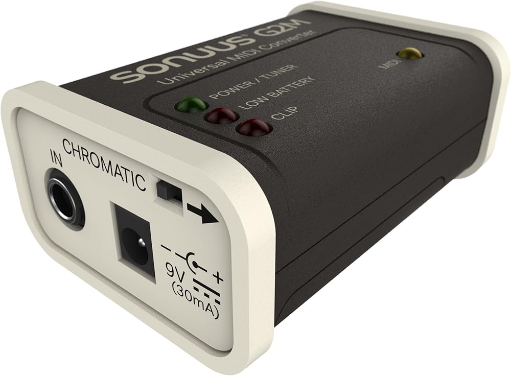 The G2M is a simple-to-use, highly effective, guitar-to-MIDI converter. It is "Universal" because it doesn't need a special pick-up mounted on your guitar, but instead simply connects to your guitar like any other effects pedal.