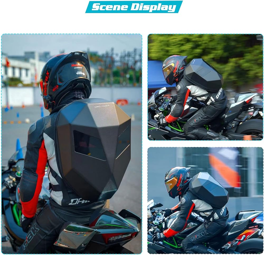 【يمكنك صنعها بنفسك بحرية】حقيبة ظهر الدراجة النارية المزودة بشاشة عرض LED، يمكنك تعديل المحتوى الذي تريده، مثل تحميل النص والرسوم المتحركة والصور المفضلة لديك....