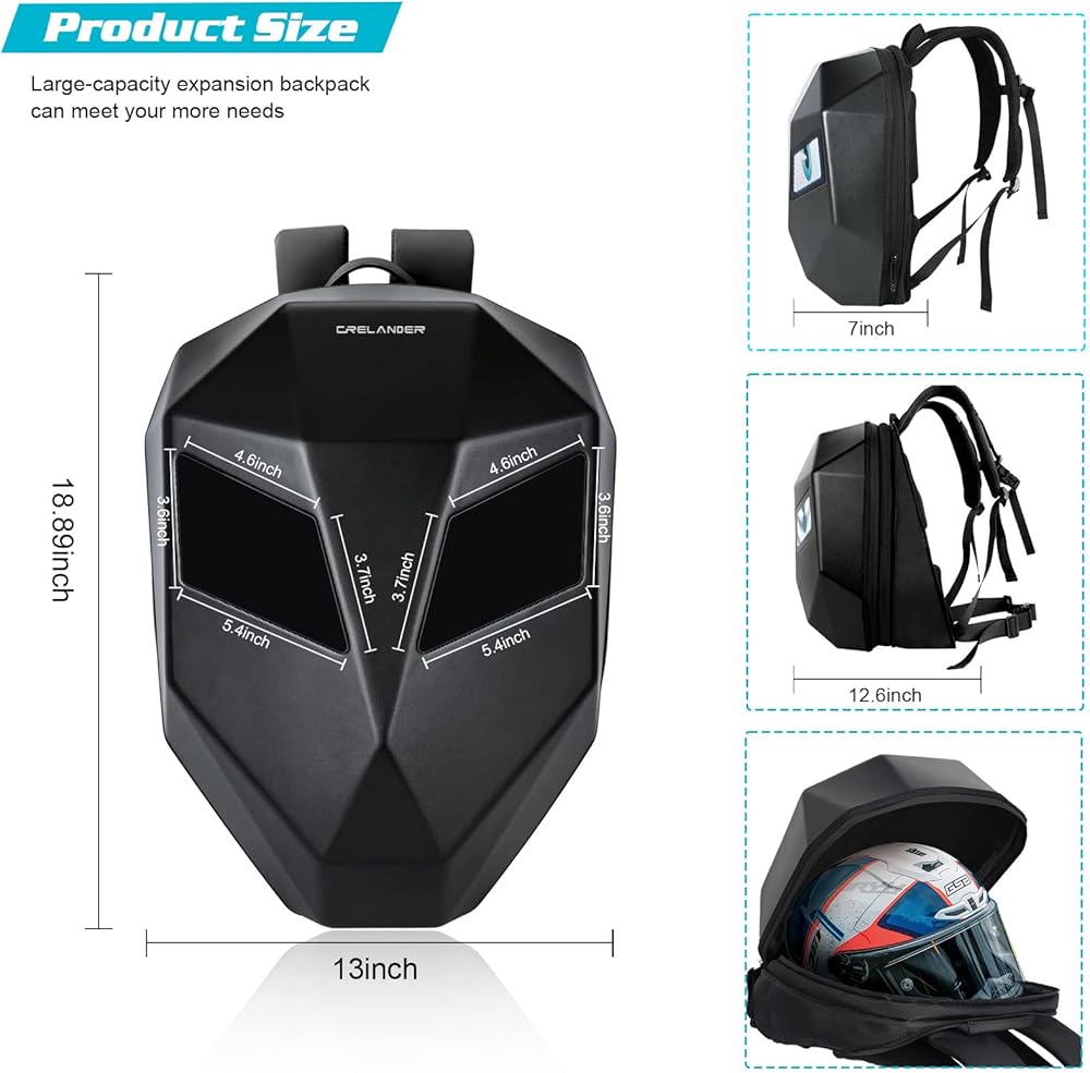 【سعة كبيرة 】 الحجم الطبيعي لحقيبة الظهر LED هو حوالي 18 × 7 × 13 بوصة؛ بعد فتح الطبقة المخفية، سيتم توسيع الجزء السفلي بحوالي 12 سم. مع المساحة القابلة للتوسيع، يمكن لحقيبة الخوذة حمل أنواع كثيرة من خوذات الدراجات النارية، كاملة خوذات الوجه وخوذات الطرق الوعرة والمزيد.