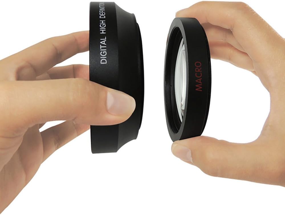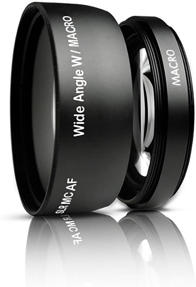 The camera's angle of view multiply the camcorder, digital/video camera by 0.43 times, which more than doubles the angle of view of the camera. Great for landscapes or recording in situations where a little creative curvature of field , it is wanted for a certain style. This excellent lens can be separated in two pieces (unscrewed): macro part and wide angle part. So you can use it both ways: like macro lens (without wide angle part) and like wide angle with macro together! This is a very unique feature of this lens for its price. So for the price of only ONE lens you are getting TWO! Professional 0.43x Super Wide Angle Lens *0.43X Professional Deluxe High Definition Super Wide Angle Lens *Built-in MACRO lens for extreme close-up shots *Digital SLR Pro Lens *Professional High Definition: PHD Lens reduces glass flare & ghosting caused by reflections *Special Element Frame: Special matte aluminum satin finish frame reduces reflections & optimized photography *Premium Rimmed Glass: High quality rimmed glass reduces light reflection around lens edge *Infrared Compatible: For high resolution day & night recording