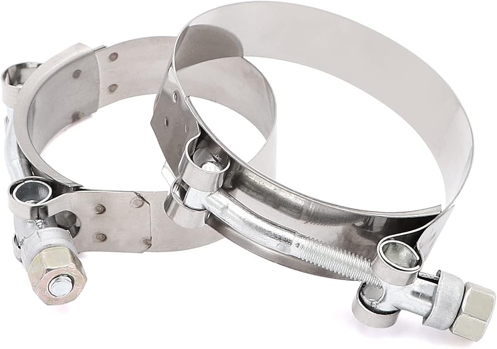 القطر الداخلي للمقرنة: 2 بوصة - 2.5 بوصة (51 مم - 63 مم). الطول: 3 بوصة (76 مم). السُمك: 5 مم. 2 × مشابك على شكل حرف T (64 مم، 76 مم)