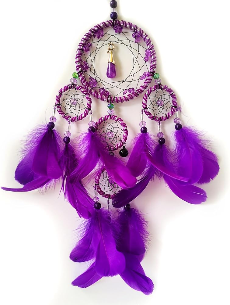 الحرف اليدوية - صائد الأحلام الخاص بنا مصنوع من الريش والخرز وحلقة متينة تدوم لسنوات. جميع صائدات الأحلام مصنوعة يدويًا على يد حرفيين، مما يضمن أن كل واحدة منها هي قطعة فريدة وأصلية.