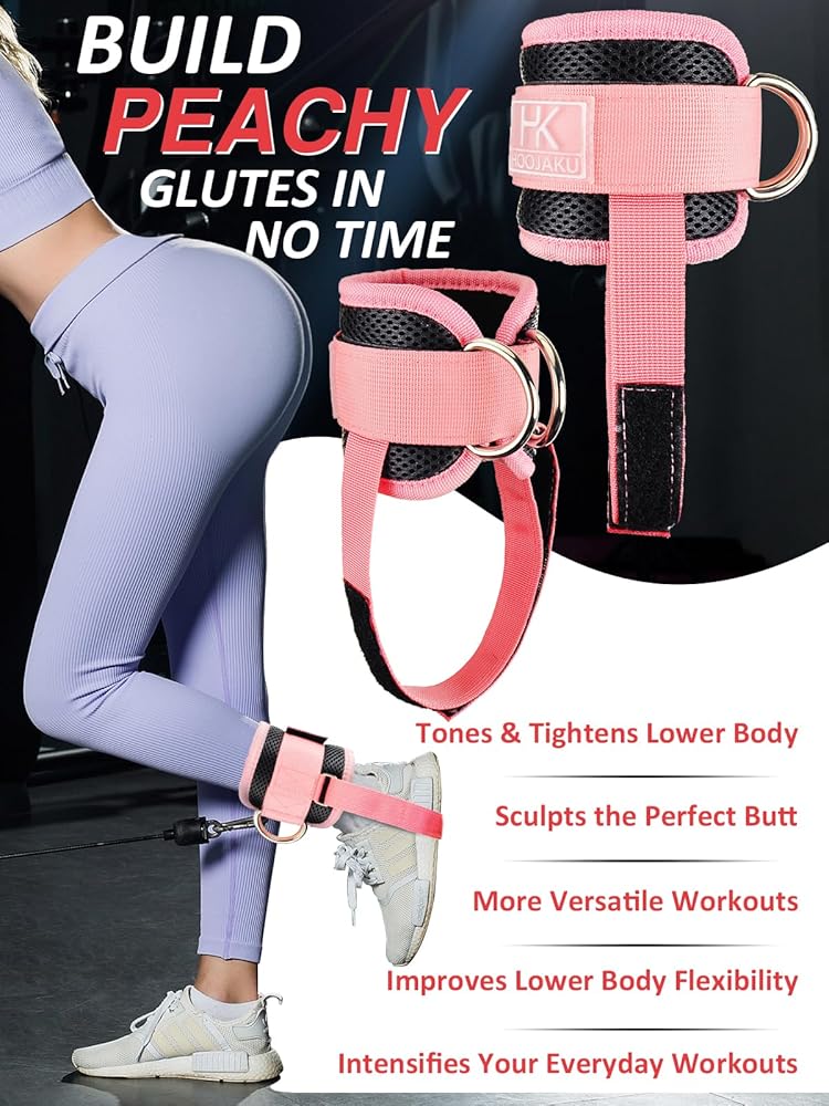 ARTIFACT OF SPORTS BUFFS: You can get you dream legs that are as work of art with these unique ankle straps. Just wear and connect them to the cable machine, exercises for your thighs, glutes, hips, hamstrings and calves through three D-rings around the ankle. Let your legs get a full range of exercise, the leg will have more muscular and become more slim!