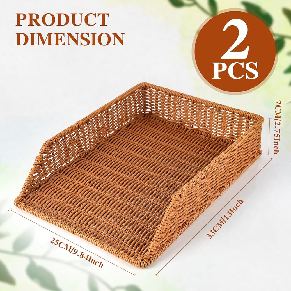 • 2. Packing List: You will receive 2 pieces rattan paper tray for desk, the size is 9.84x13x2.75 inches, large enough to fit all your favorite magazines, a great way to organize all your essays and letters!